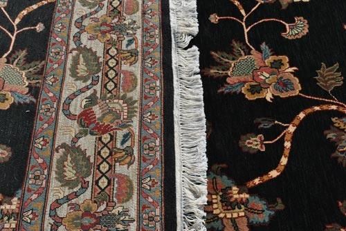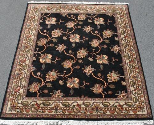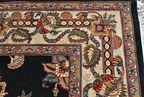 absolutely gorgeous handmade dark toned allover floral tabriz design rug. size 8 x 10 feet, made of 100% baby lamb's wool pile on cotton foundation, all natural vegetable dye,a splendid allover floral pattern on a dark toned background, contrasted beautifully with a lighter colored yet intricately detailed floral trim.nice contrast in colors gives this authentic handmade rug great aesthetic appeal.
