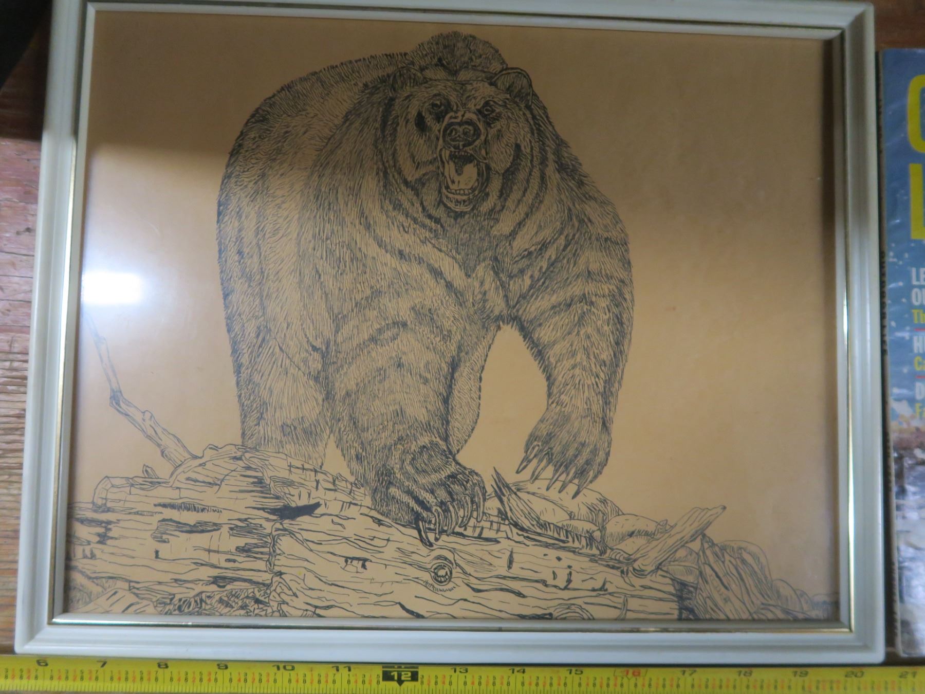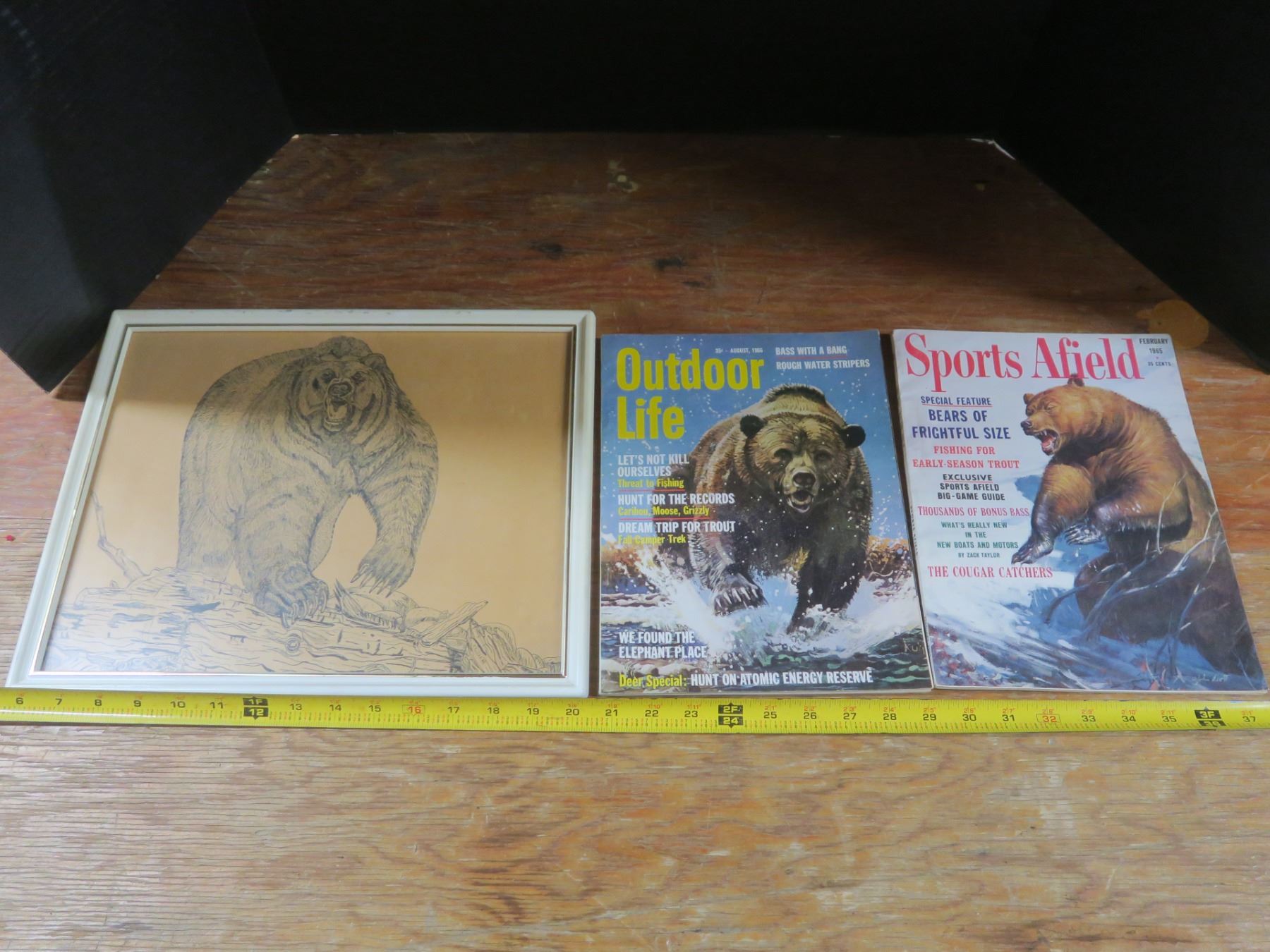 grizzly ink picture in frame and 2 outdoorsman magazines