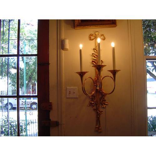 magnificent sconce , gold leave . " cor de chasse " shape , hand sculpted .