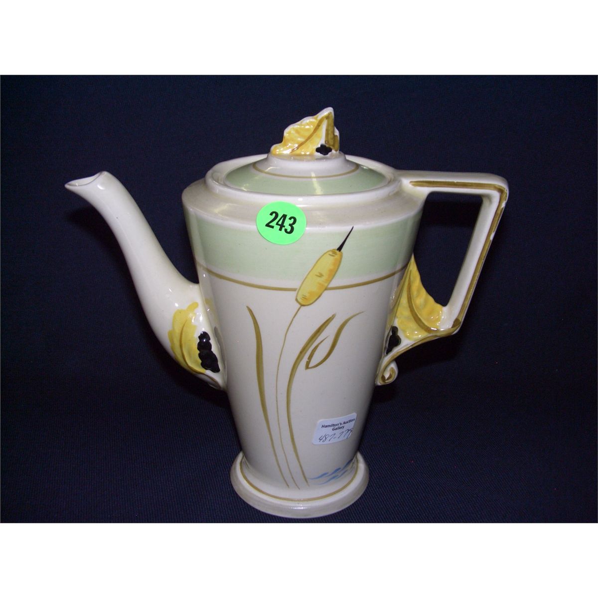 hand painted made in England porcelain tea pot Clarice Cliff style 7 3/4