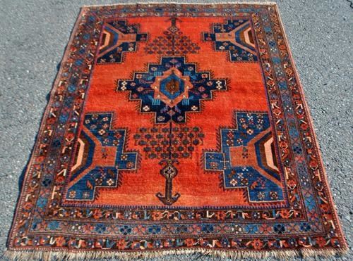 hand woven wool on wool semi antique persian viss. size 4.9 x 5.11 feet, made of fine quality lamb's wool pile on cotton foundation, all natural vegetable dye. hand woven rug from viss, iran.