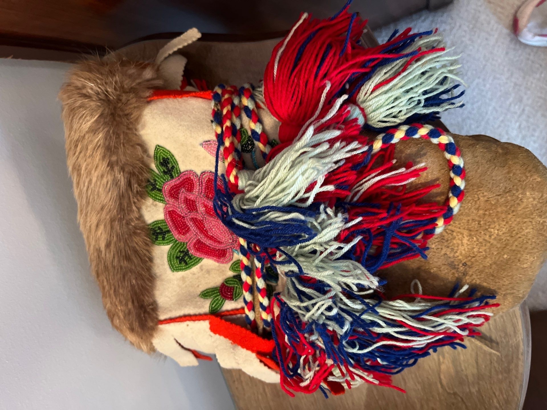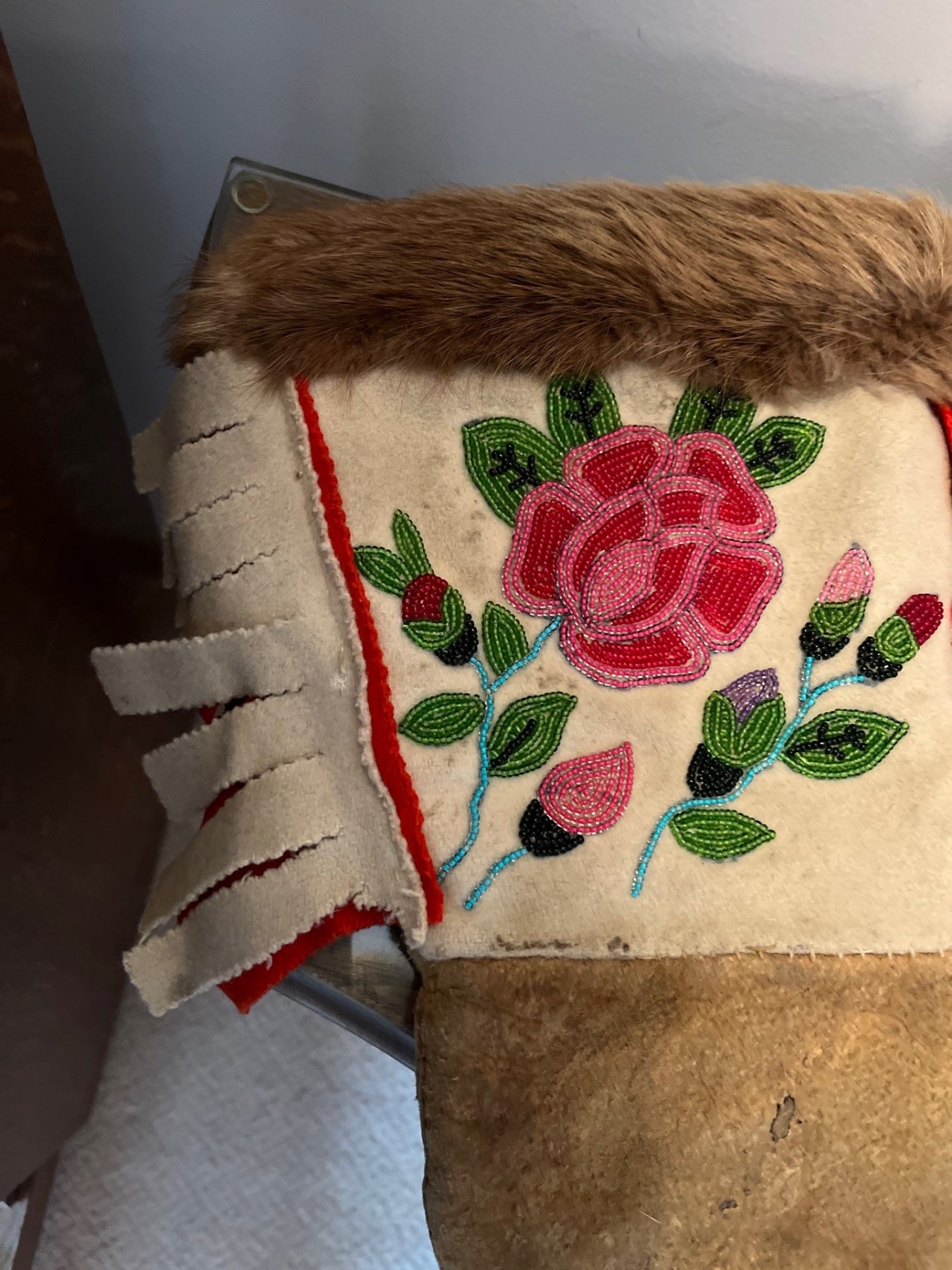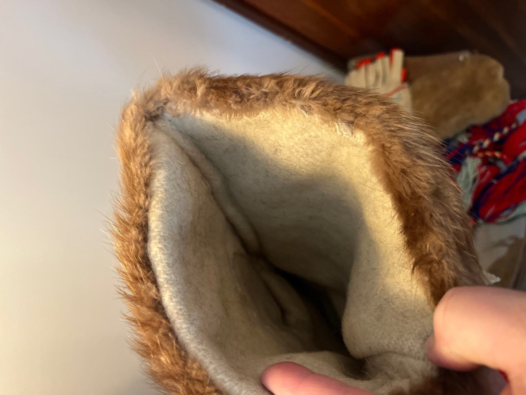 handcrafted indigenous mitts very beautifully detailed beaded fur lined in amazing condition.