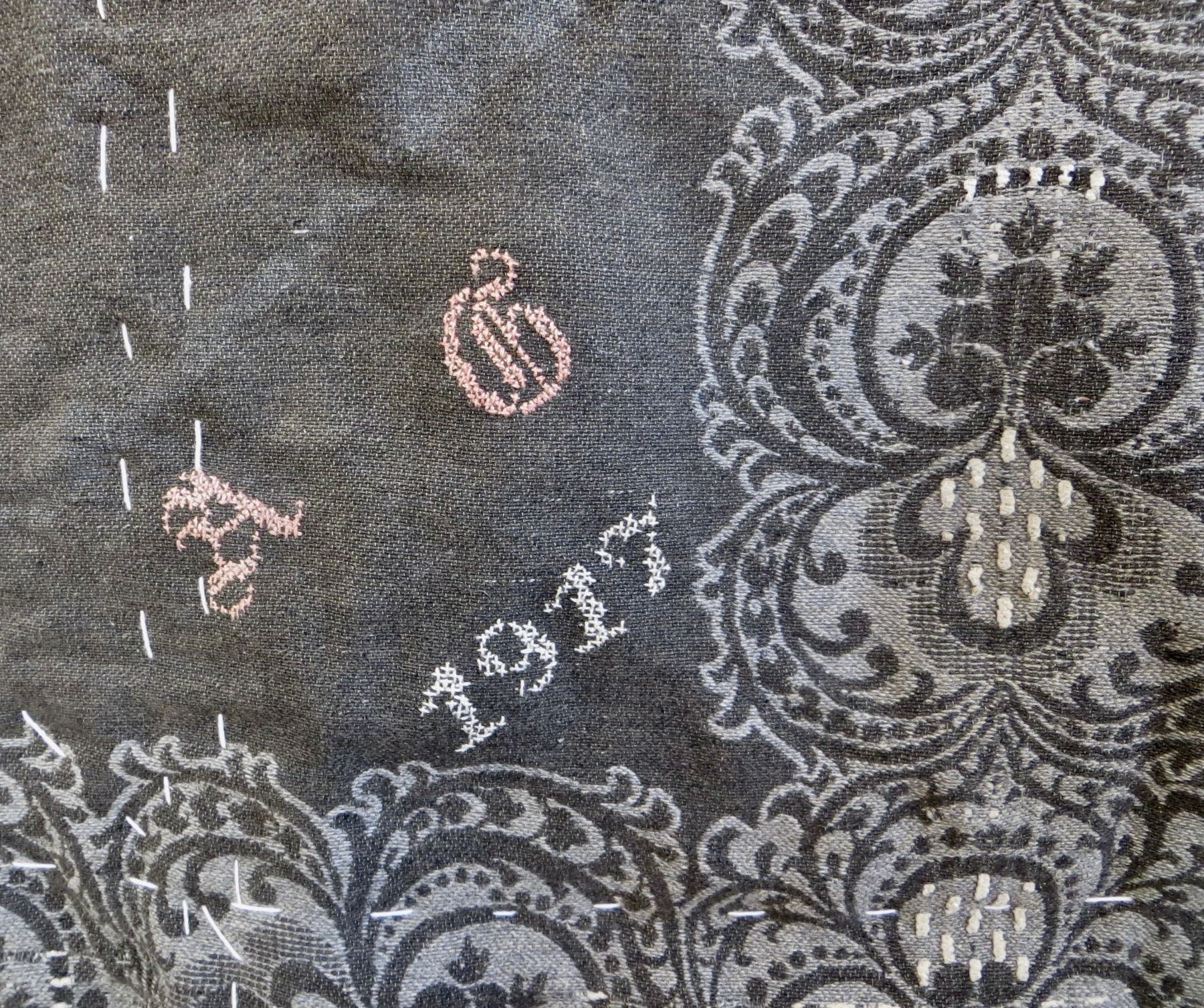 handmade quilt - initials and dated 1917 - 62"Wx66"L
