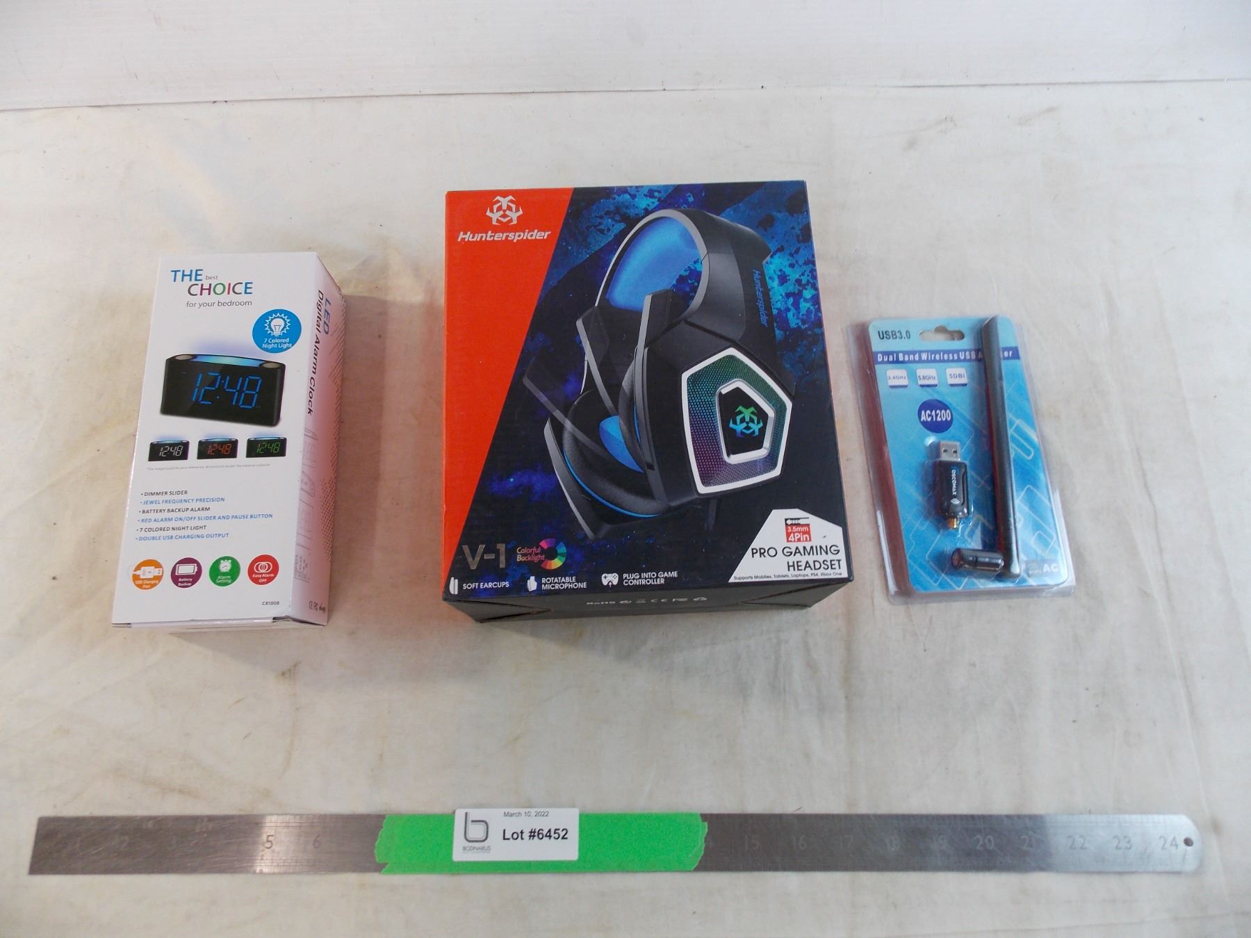 headset, led clock, usb wifi - all untested