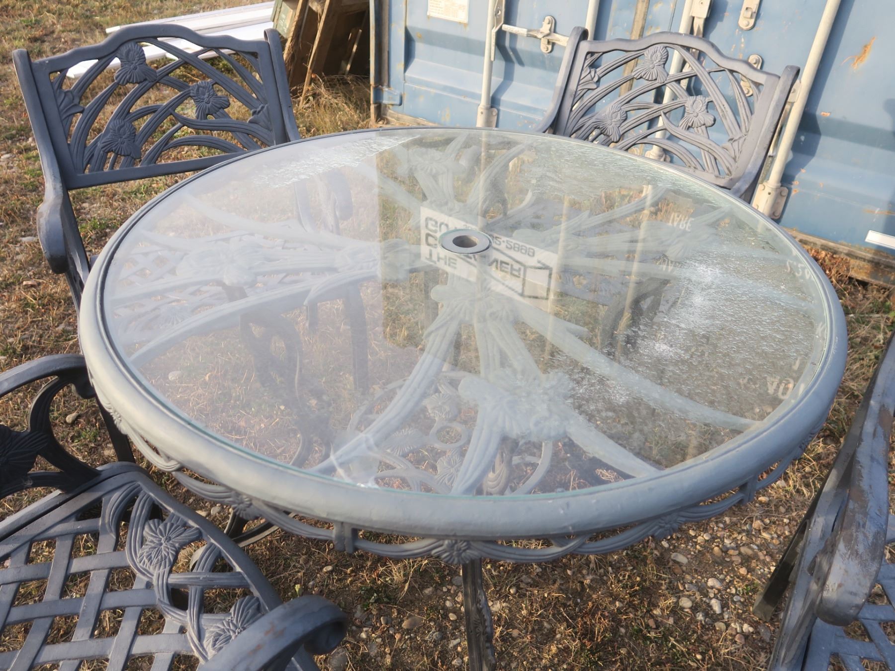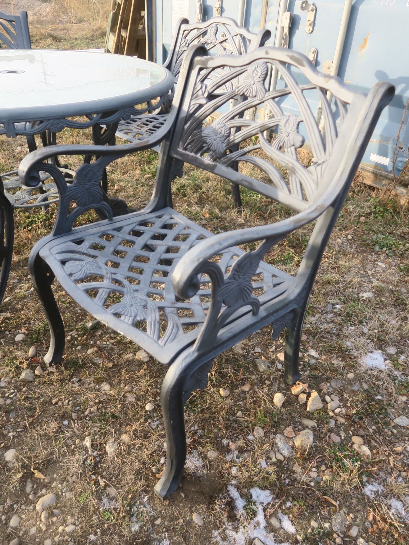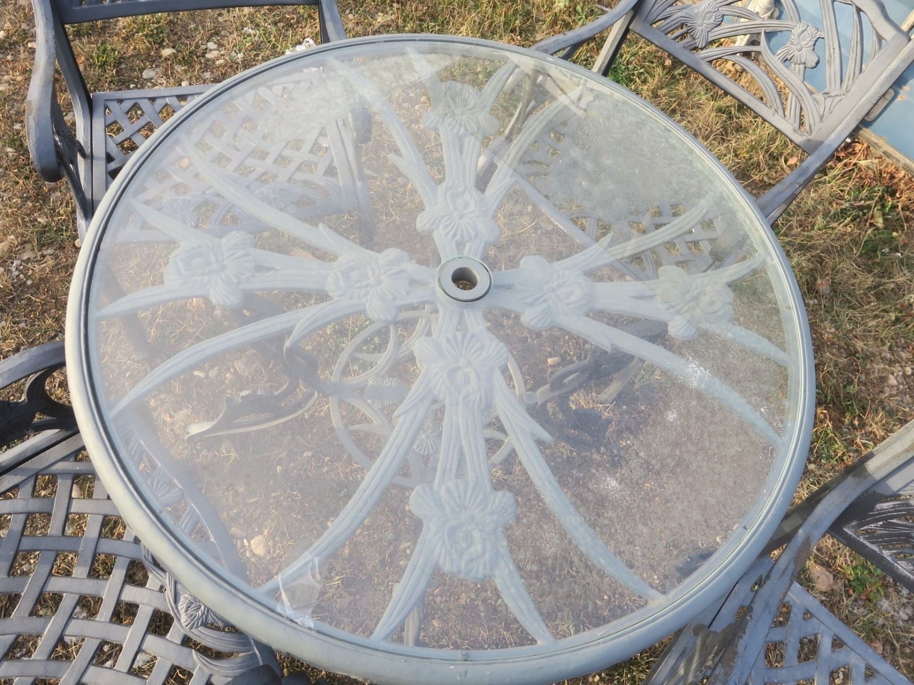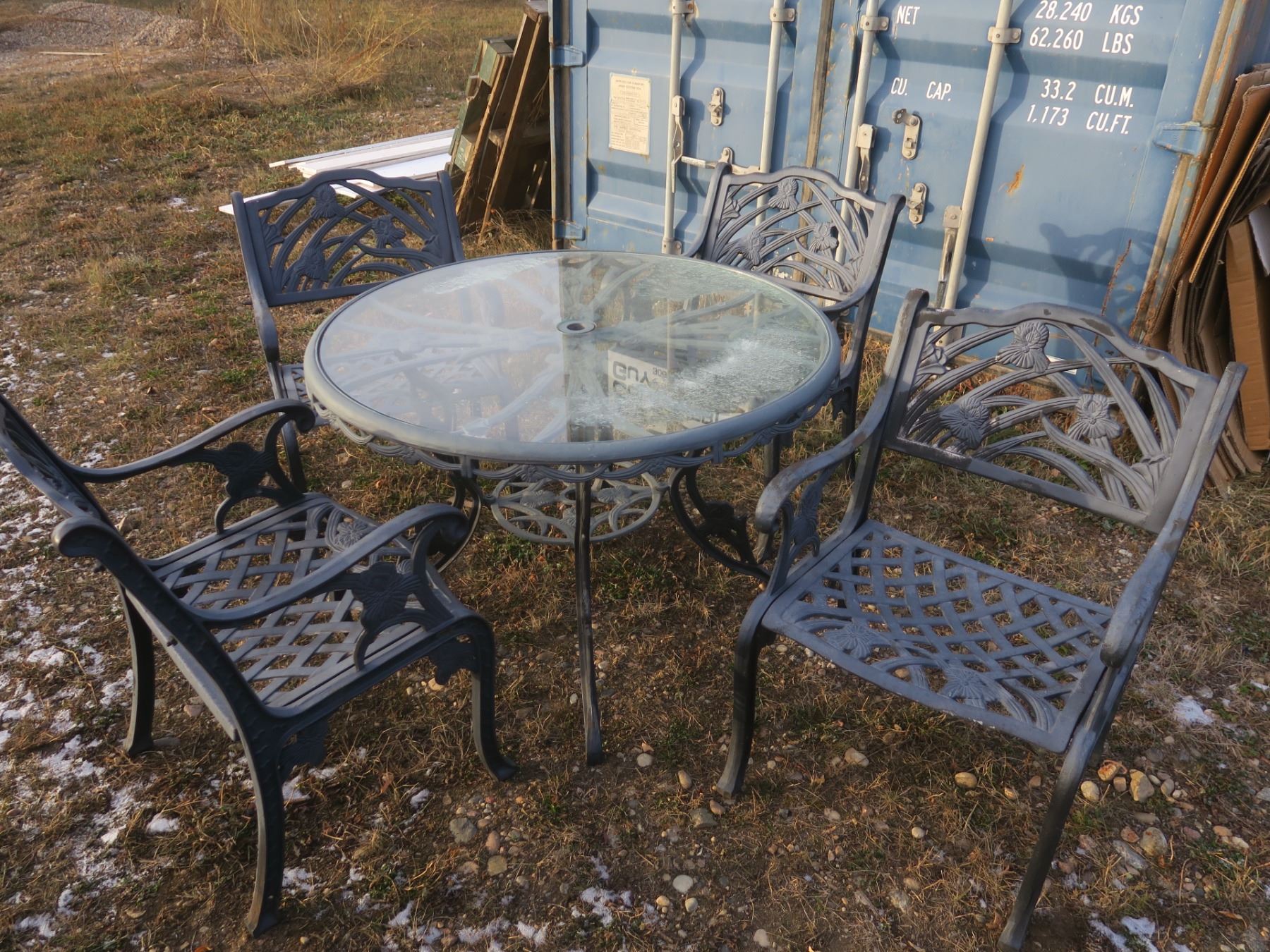 heavy solid cast iron patio table and chairs - table: 42"x42"x29"H