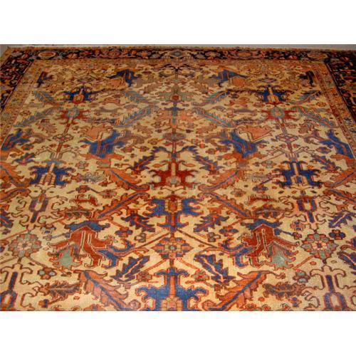This is an antique persian rug. It has 100% wool pile on cotton base. It's an early 20th Century piece. The piece has great craftmanship, as well as being a timeless piece of art.