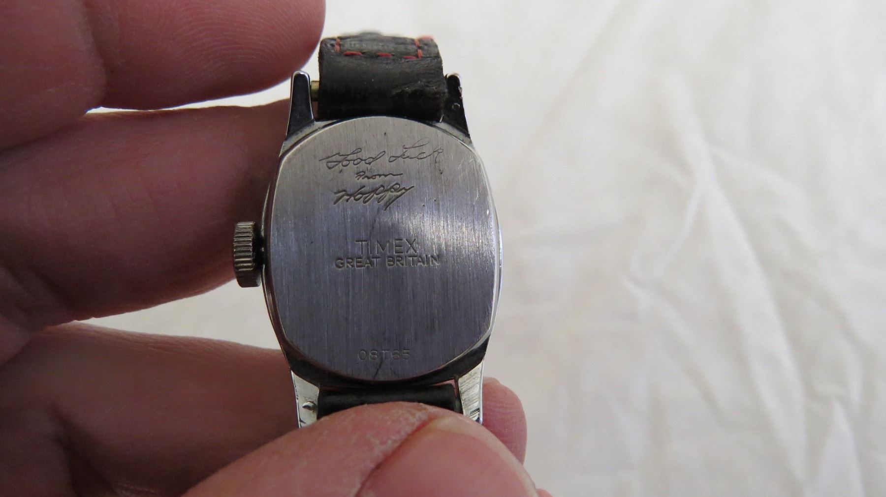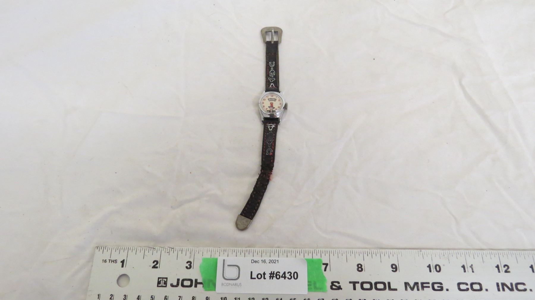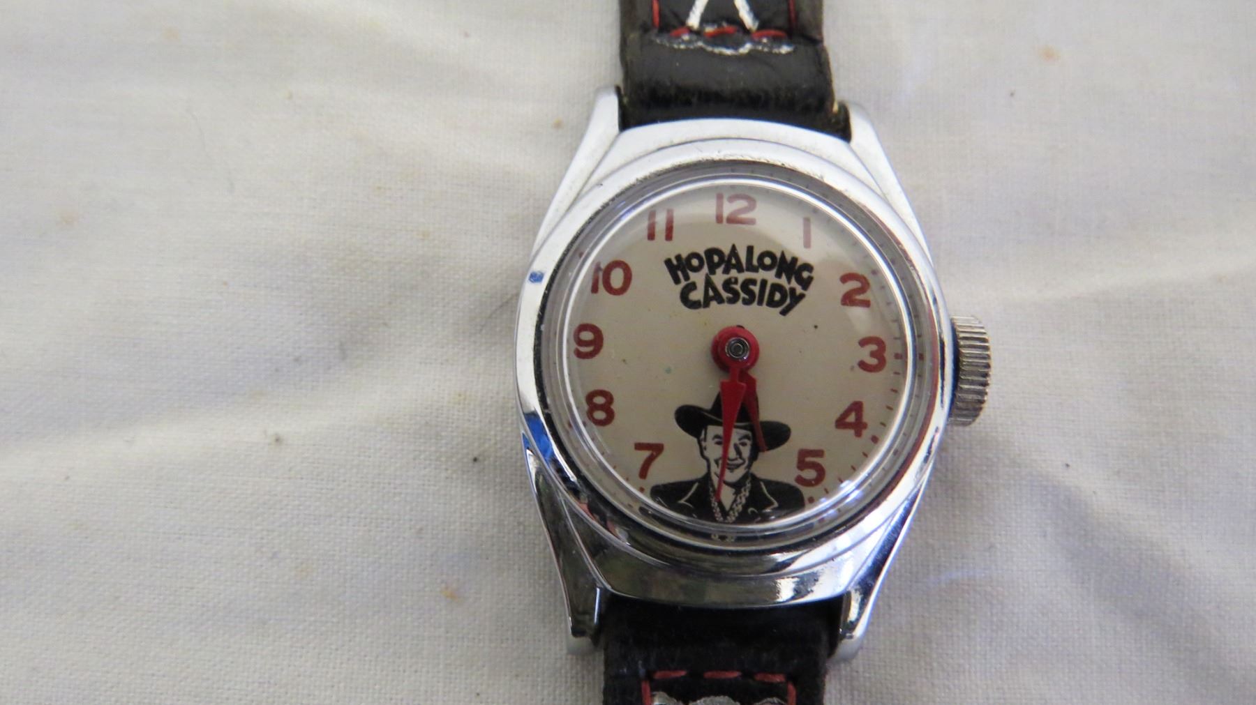 hopalong cassidy watch - original - "good luck from happy" on the back - band is worn badly