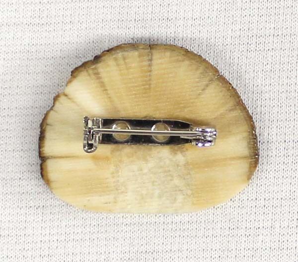 Fossilized Walrus Ivory Scrimshaw Loon Brooch, measures 1.25'', artist's initials BS on front of brooch