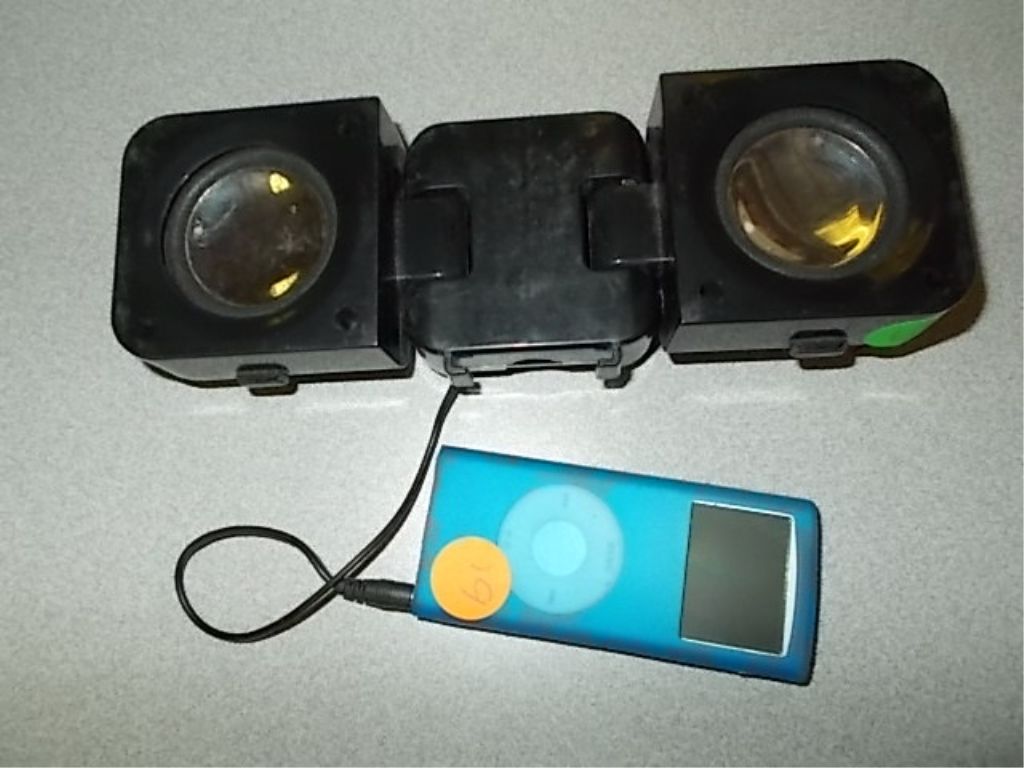 Silver i-Pod in blue case with Speakers (works) 2GB