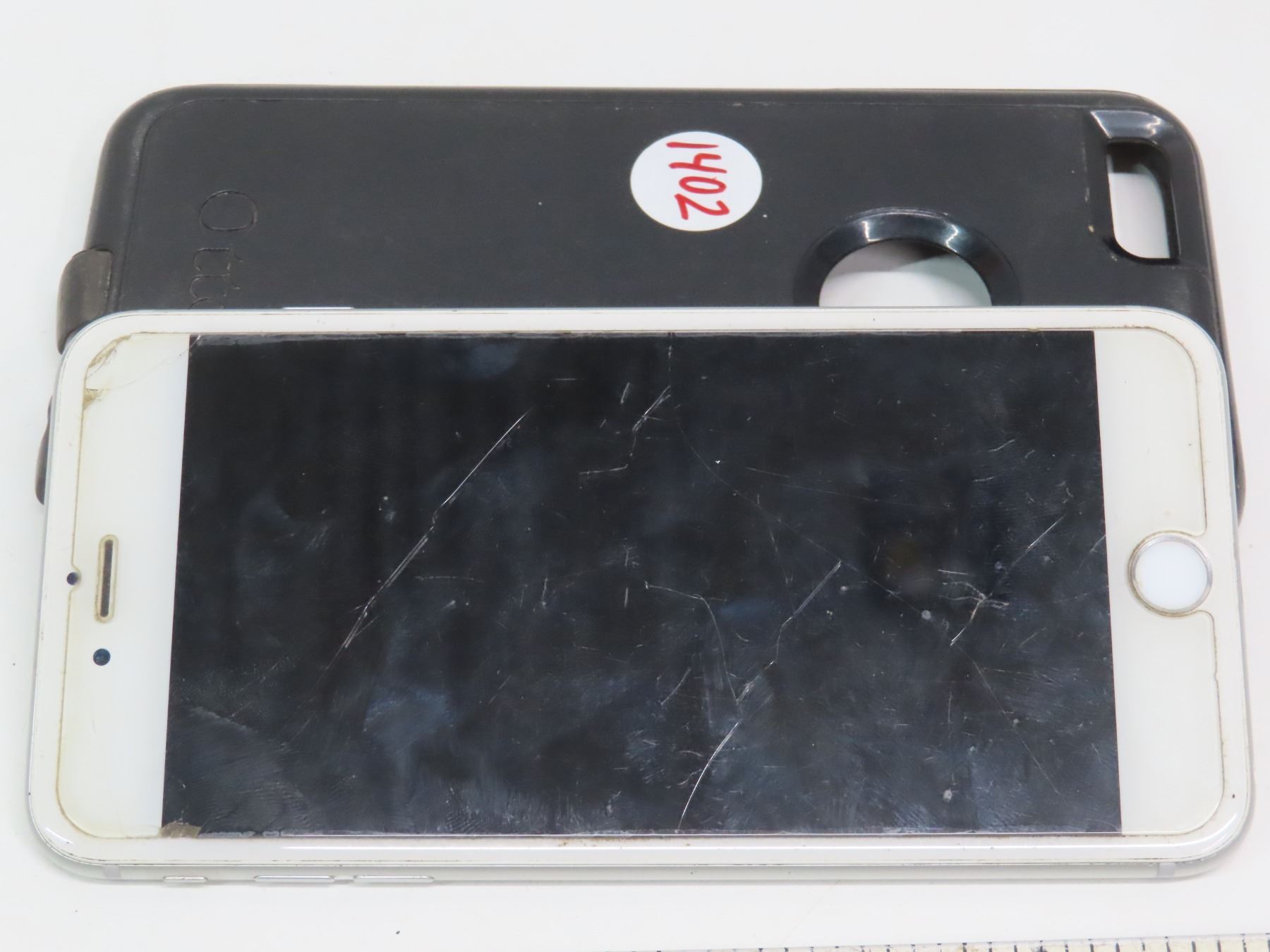 iPhone + case ( iPhone S model A1687) - Screen has multiple cracks, but still works. Phone boots up.