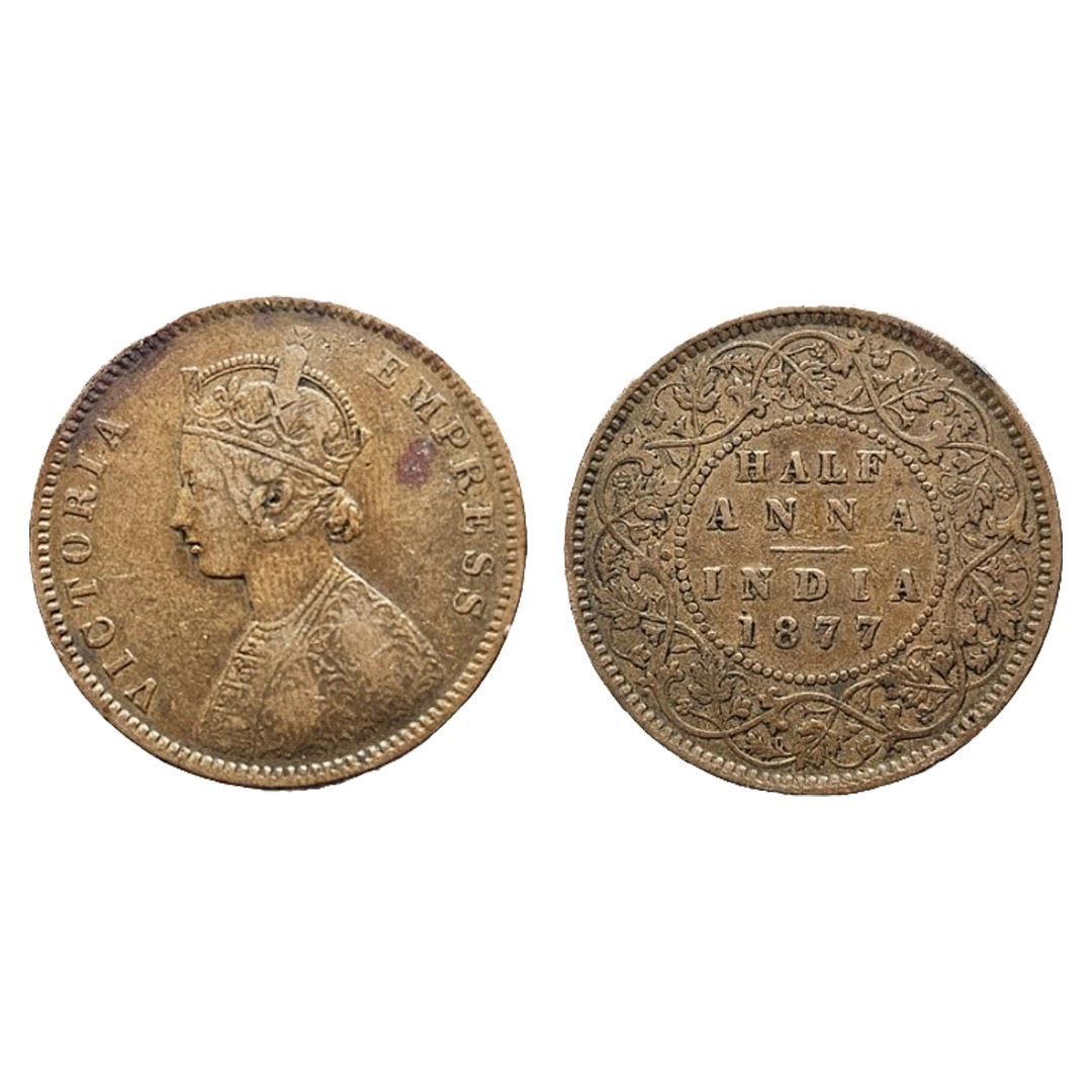 ictoria Empress, Copper 1/2 Anna, 1877, Calcutta Mint