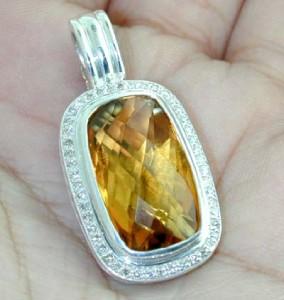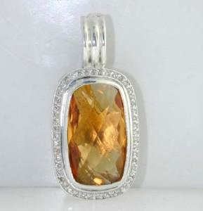 David Yurman Silver Citrine & Diamond Pendant. The total weight of Pendant is 12.5 grams. Size of Citrine: 21x12 mm. Total weight of diamond: 0.45 cts, H color, SI-1 clarity. The size of the pendant is 35 x 17 mm,Thickness is 5 mm.