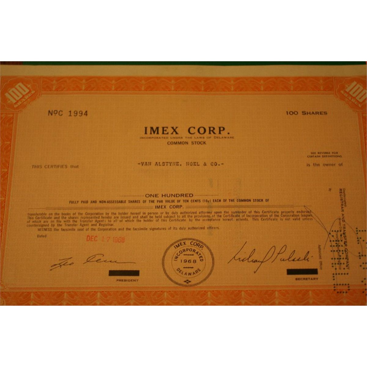 imex corp stock certificate