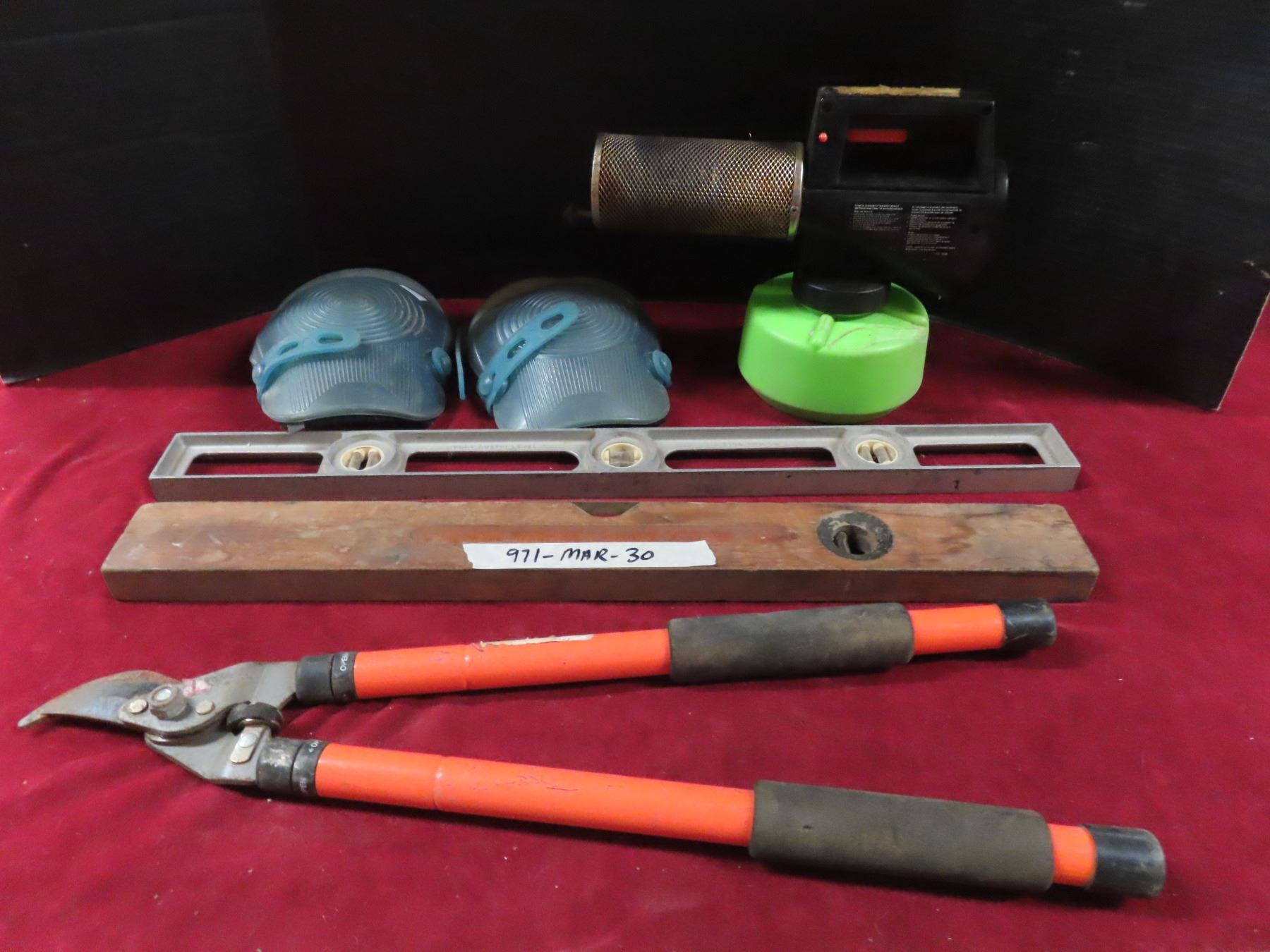 insecticide flogger , knee pads , levels , snips
