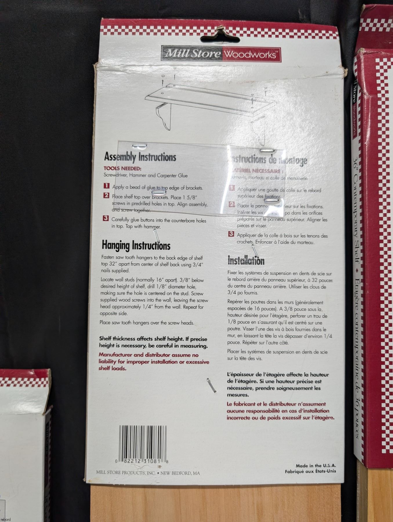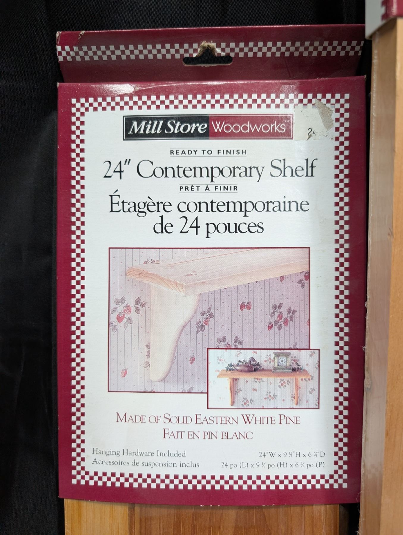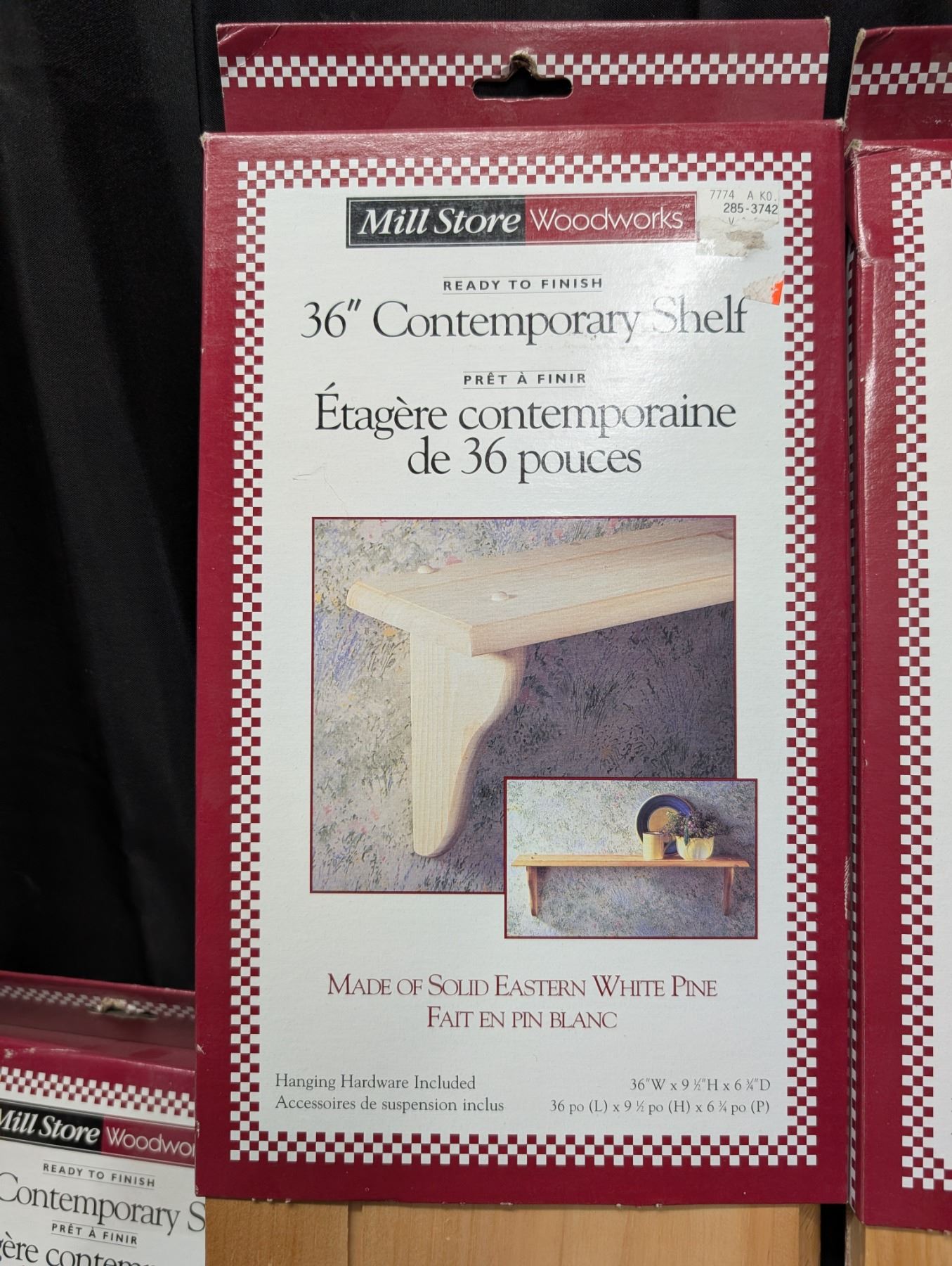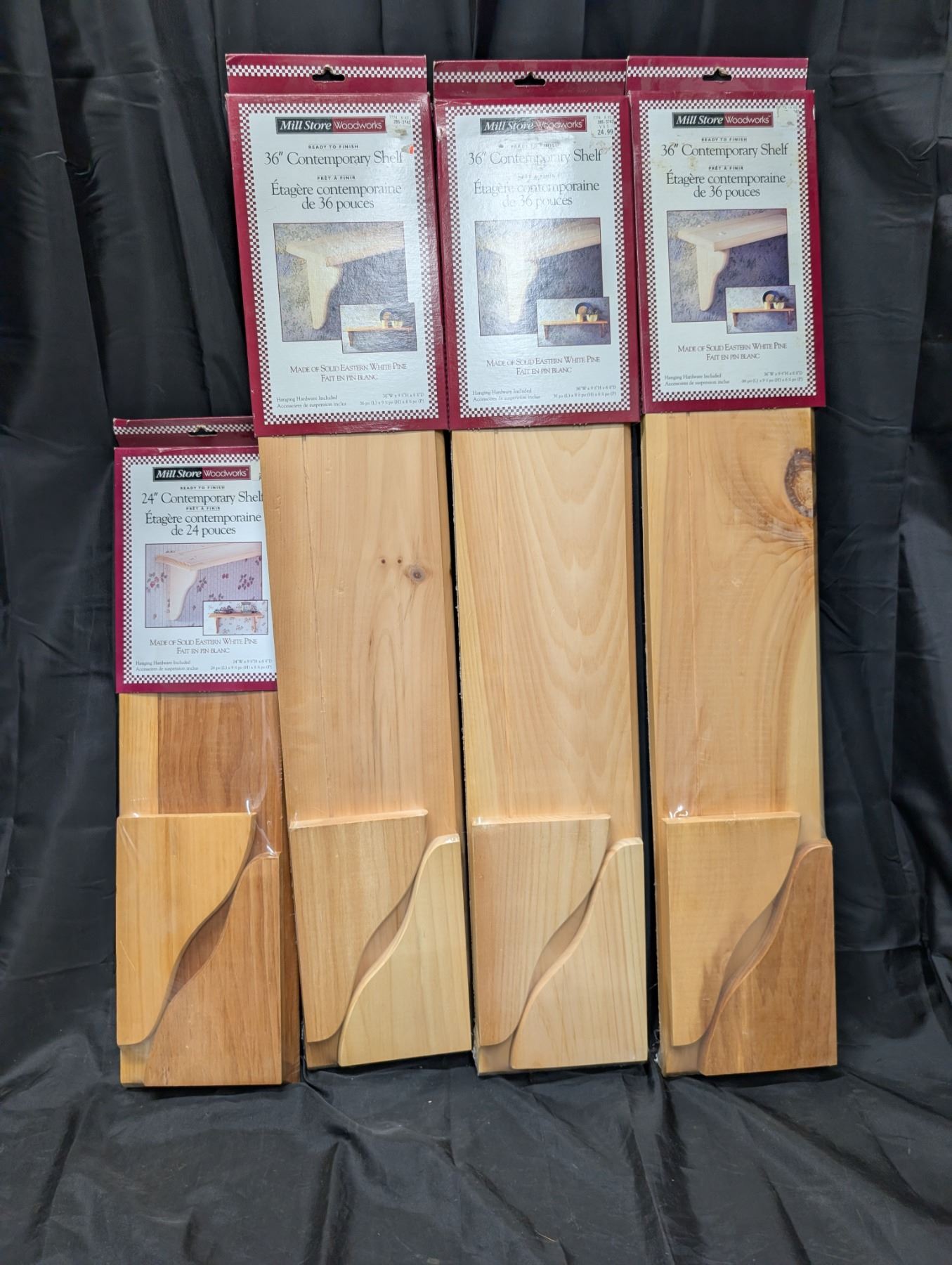 Set of Mill Store Wood Work Shelves (1) 24"x9 1/2"x 6 3/4" and (3) 36"x 9 1/2"x 6 3/4"