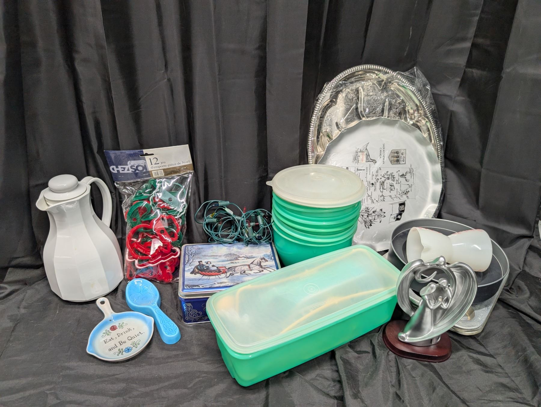 Misc. Christmas /Baking/Misc. items (tubber ware, Cookie Cutters, Trays, etc.)