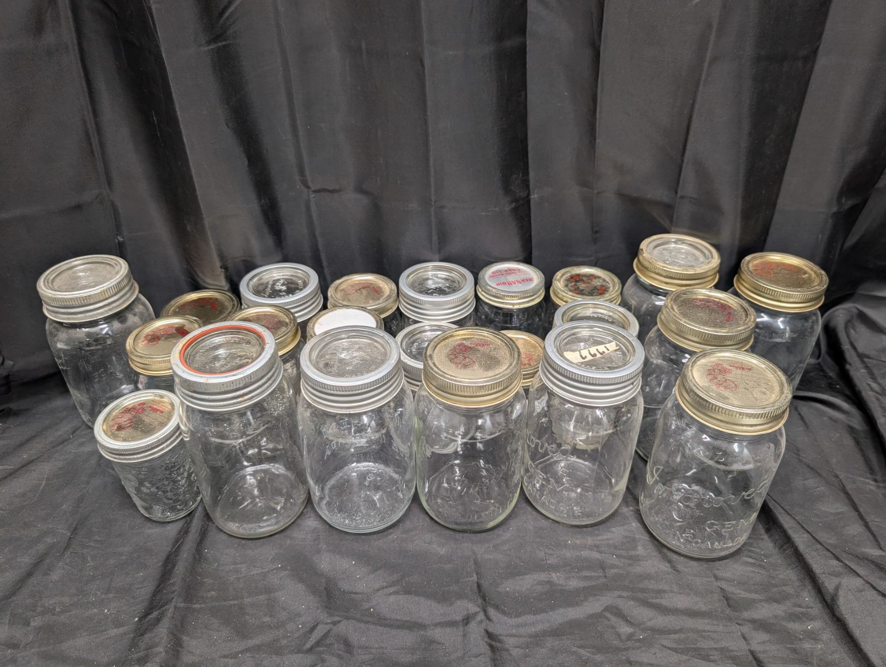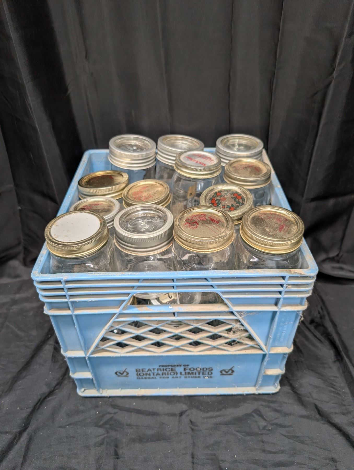 Crate of Mason Jars (Improved Jem, Canadian Jewel, and etc.) w/ Misc. Lids