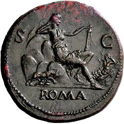 The Roman Empire. Vespasian, 69–79. Sestertius, 71, Æ 28.39g. IMP CAESAR VESPASIANVS AVG PM TR P COS III Laureate head r., with aegis Rev. S–C Roma seated r. on the seven hills propping head on r. hand and holding sceptre in l.; to l., wolf and twins; to r., river Tiber. C 404. BMC 774 (these dies). RIC 108 (these dies). CBN 523. Extremely rare, only one reverse die known of this important issue. Dark brown-green patina expertly smoothed with loss of Roma’s helmet-crest from former area of corrosion on reverse, otherwise about extremely fine. Ex Leu 50, 1990, 291, NAC 7, 1994, 706 and Vinchon 22 May 1995, 289 sales. From the Luc Girard collection, Rome could hardly be better represented than by this remarkable type of Vespasian, which shows the eponymous Dea Roma seated rather at ease amongst the seven hills of Rome, her sword sheathed, with the river-god Tiberis at her feet, and at her side the she-wolf suckling Romulus and Remus. This Roma renascens ('Rome reborn') type, is consciously antiquarian, and can be seen as a reflection of Rome's emergence from the violent civil war that raged from 68 to 69, the first such test of Rome in a century. As the victor in the contest and the restorer of stability to the empire, Vespasian could justly claim the privilege of using this type. The design was used only for sestertii of the first and second issues of the Rome mint in 71. Its most unusual feature is the representation of the seven hills of Rome. The city was called Septicollis because seven hills were enclosed within the Servian Wall, representing the extent of the original city; only later would outlying areas, including the Vatican Hill, be enclosed within the larger circuit wall built by Aurelian. Represented on this coin are the Palatinus, Quirinalis, Aventinus, Coelius, Viminalius, Esquilinus, and Tarpeius (Capitolinus) hills. According to popular mythology recorded by Livy, which the Romans took as national history, Rome was founded at the spot where the twins had been left to drown as infants, and subsequently were raised. When they began to build the city, Remus wished it to be named Remuria, and Romulus preferred Roma, and they quarrelled over who should rule the new city. In one version of the tale they left the decision to the tutelary gods of the countryside. The signs of the augury were interpreted differently by supporters of each; blind with ambition, fraternal combat ensued in which Remus was killed. An alternative tradition suggests that Romulus killed Remus in an act of vengeance for his having mocked his brother by jumping over the half-built walls of the new settlement. Since Livy says in the first tradition that the disputed auspices were observed by Romulus from the Palatine and by Remus from the Aventine, we might presume those two hills are the ones beside the she-wolf and Romulus and Remus. It can be seen as a precursor to aurei and denarii that Vespasian issued six or seven years later in the names of Titus and Domitian; the latter depicted the she-wolf and twins, usually above a boat, and the former showed Roma seated upon shields, accompanied by two birds and the she-wolf suckling the twins (a design that formerly appeared on anonymous Republican denarii of c. 115/4 B.C.).
