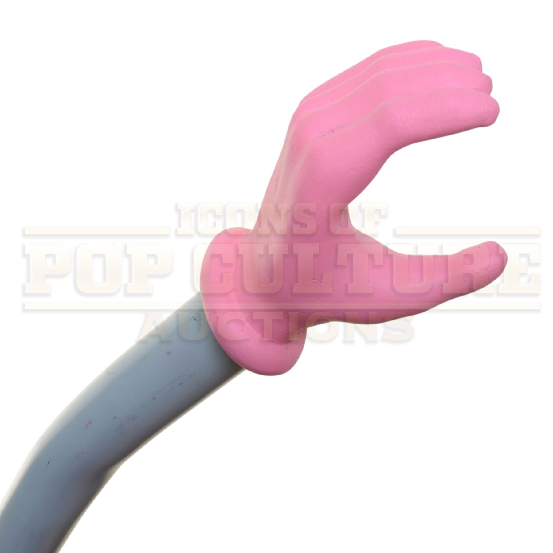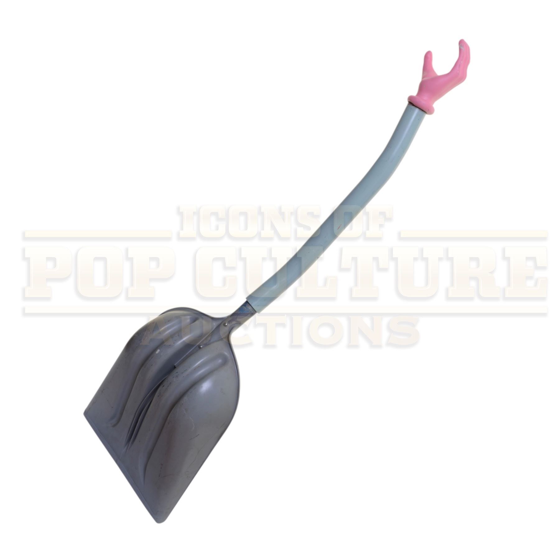 This prop snow shovel was acquired and customized by the production for use by various actors and as set dressing during filming. The shovel features a curved metal handle with custom “Dr. Seuss” style gloved had applied to the end of the handle and a plastic shovel. Measures 51” in length.