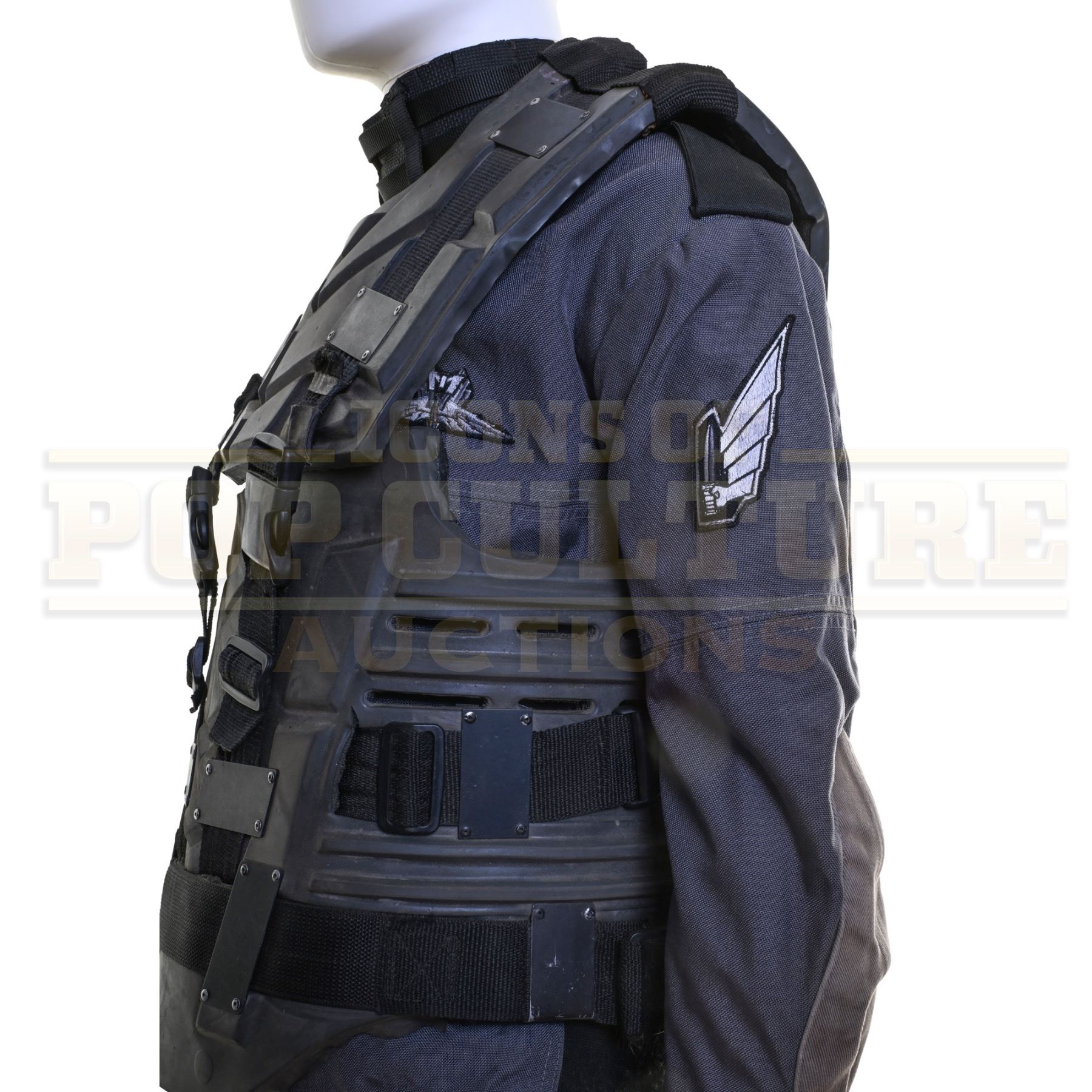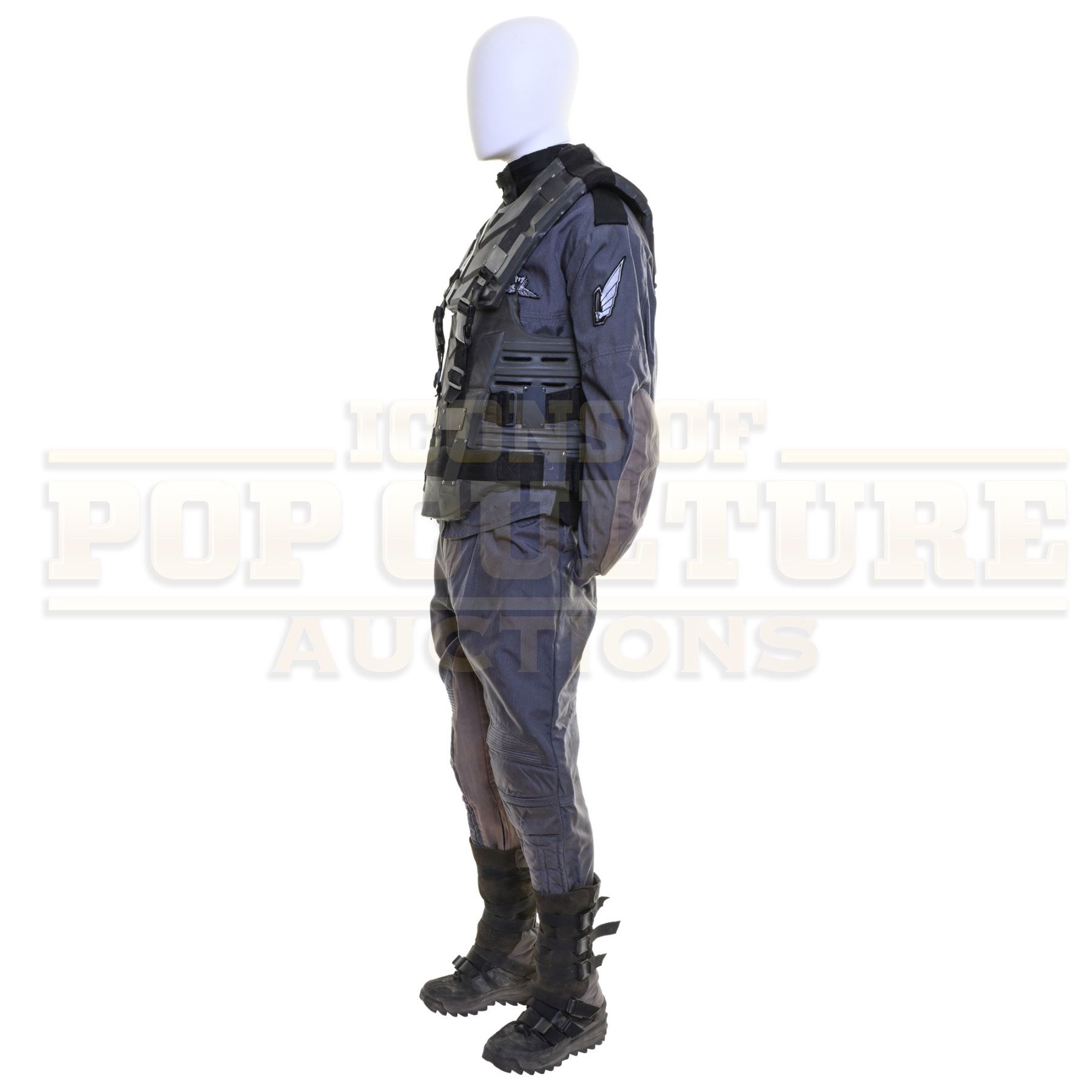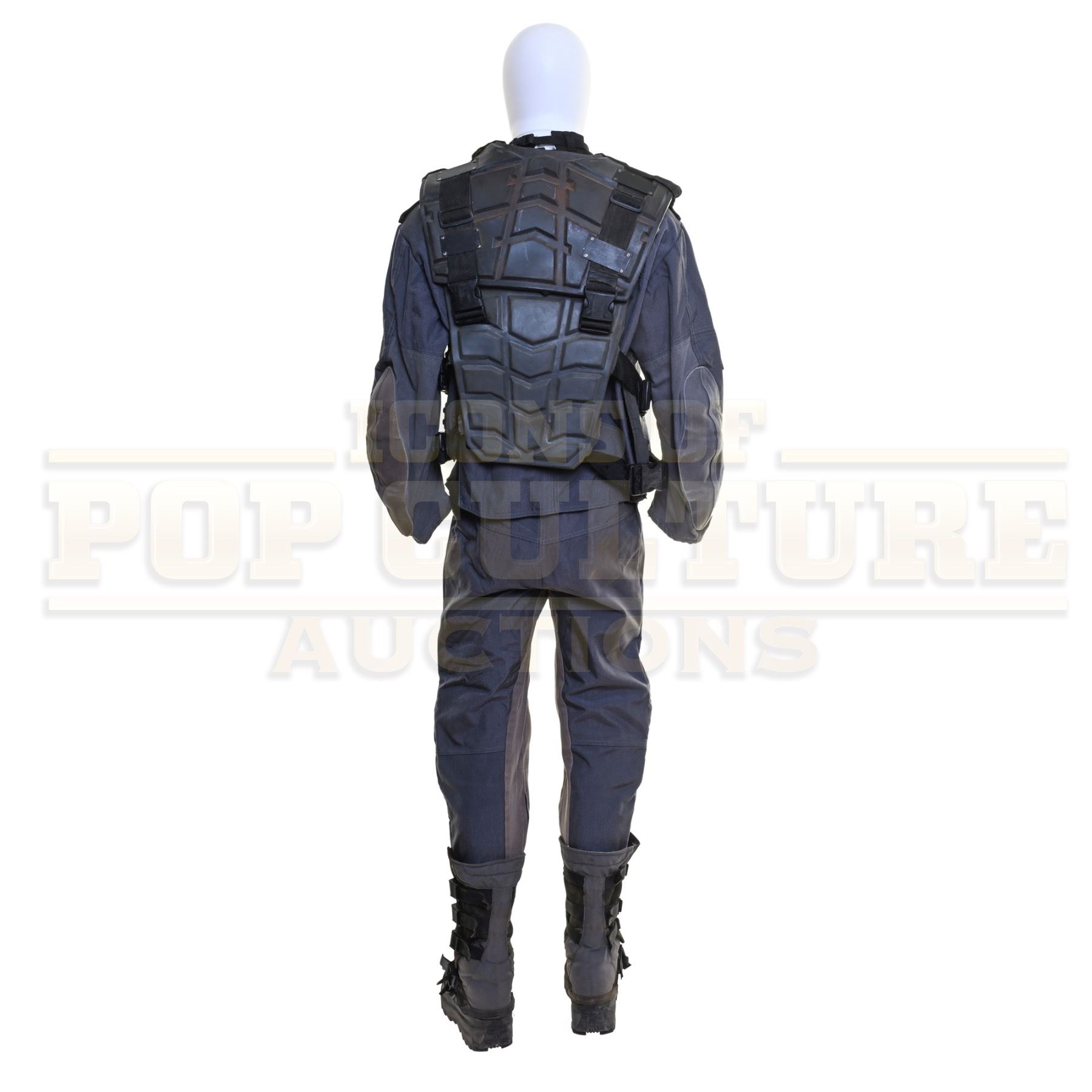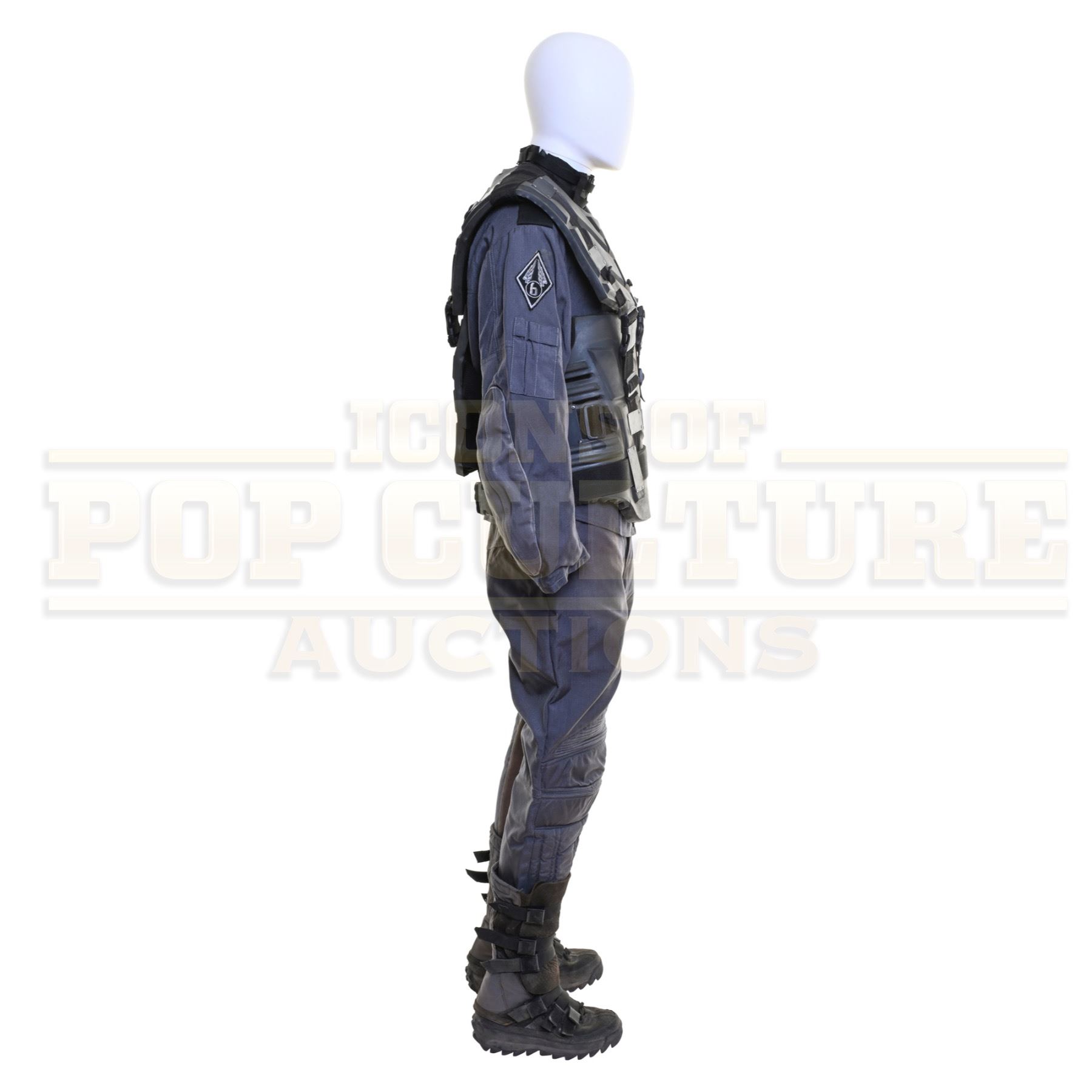 This is an original costume acquired by the production of the film "Starship Troopers" This costume is not a replica; it is an actual piece acquired by the production for use by various actors as “Mobile Infantry”. The costume is distressed and consists of the following pieces: