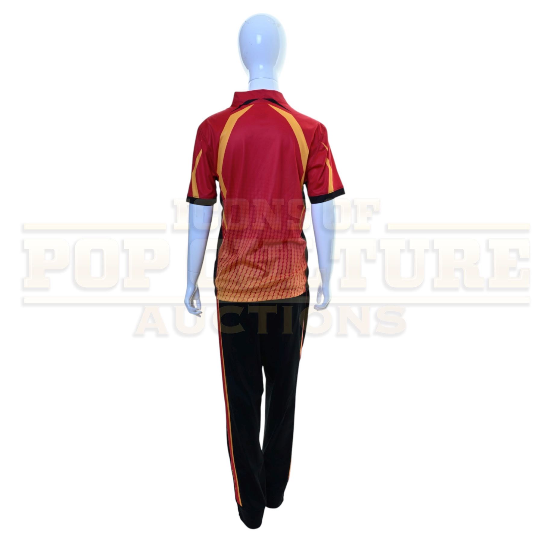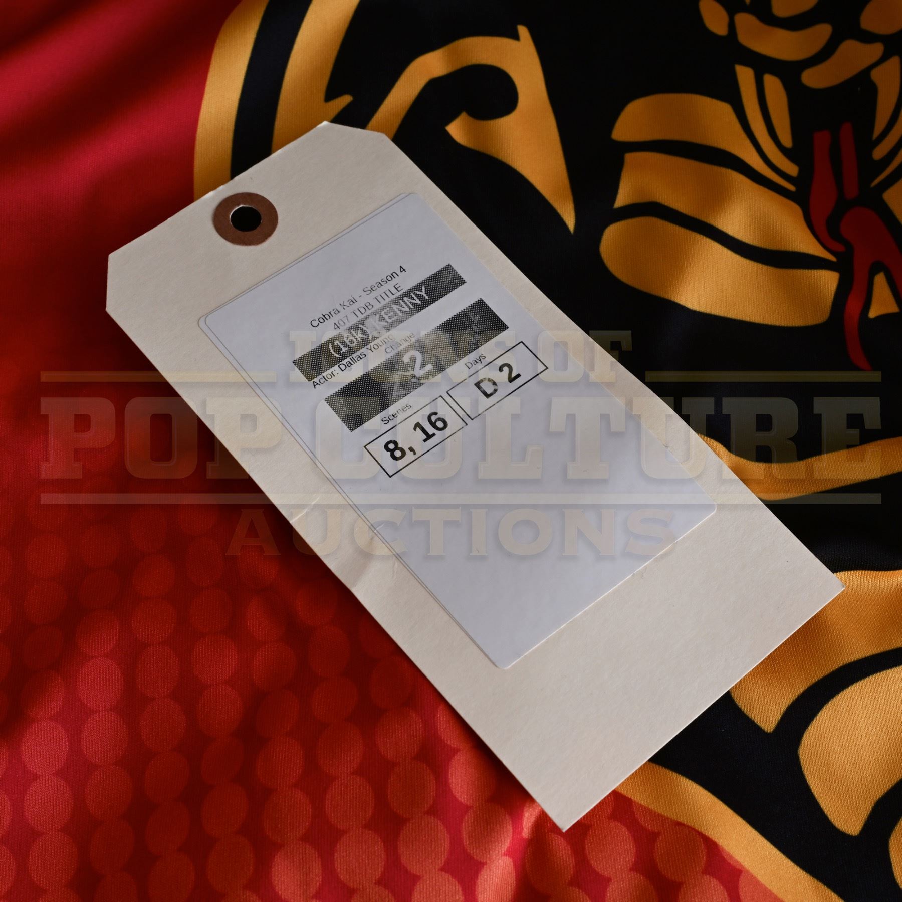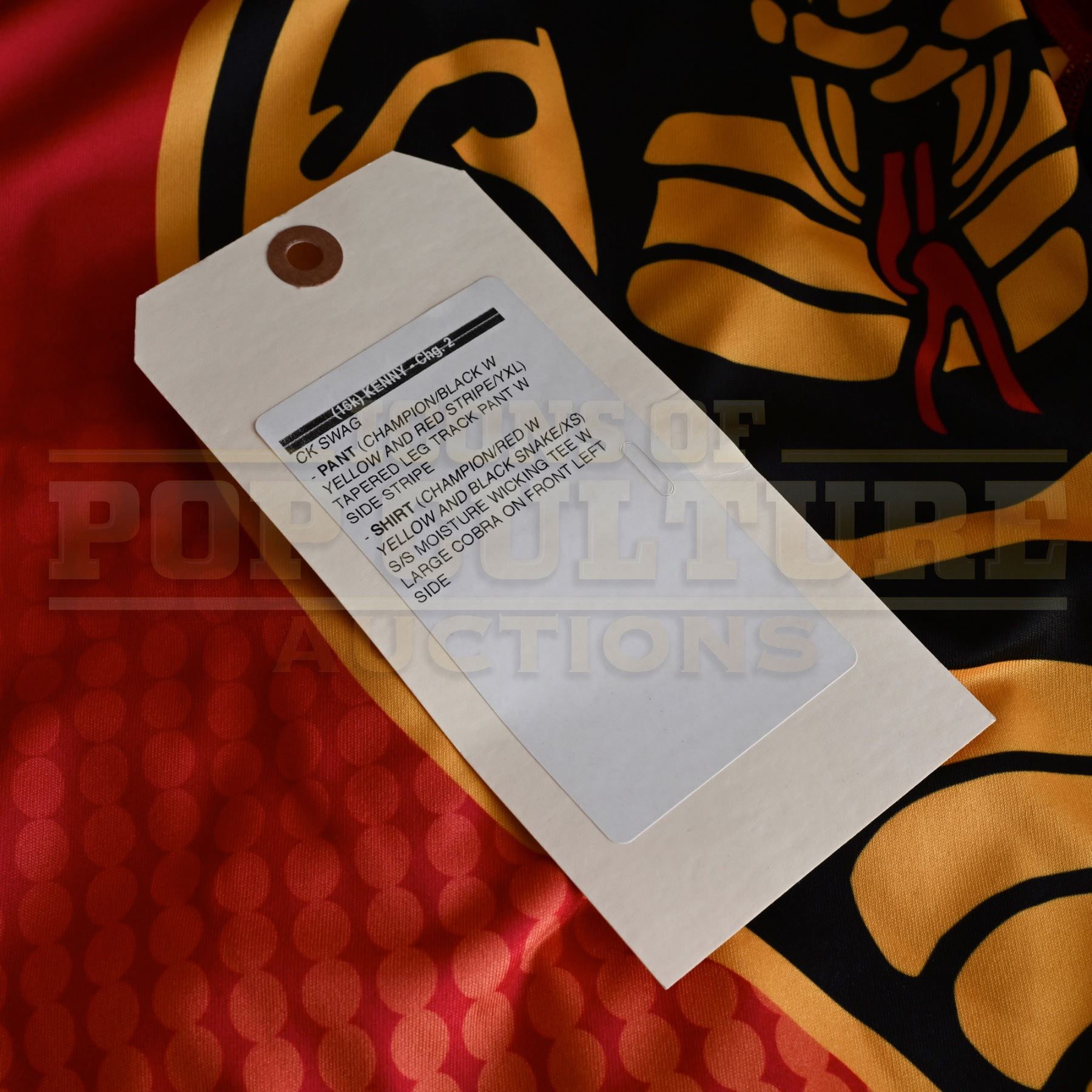 This is an original costume acquired by the production of the series "Cobra Kai" This costume is not a replica; it is an actual piece acquired by the production for use by Dallas Young as "Kenny" in the season four episode titled "Minefields". The costume consists of the following pieces: