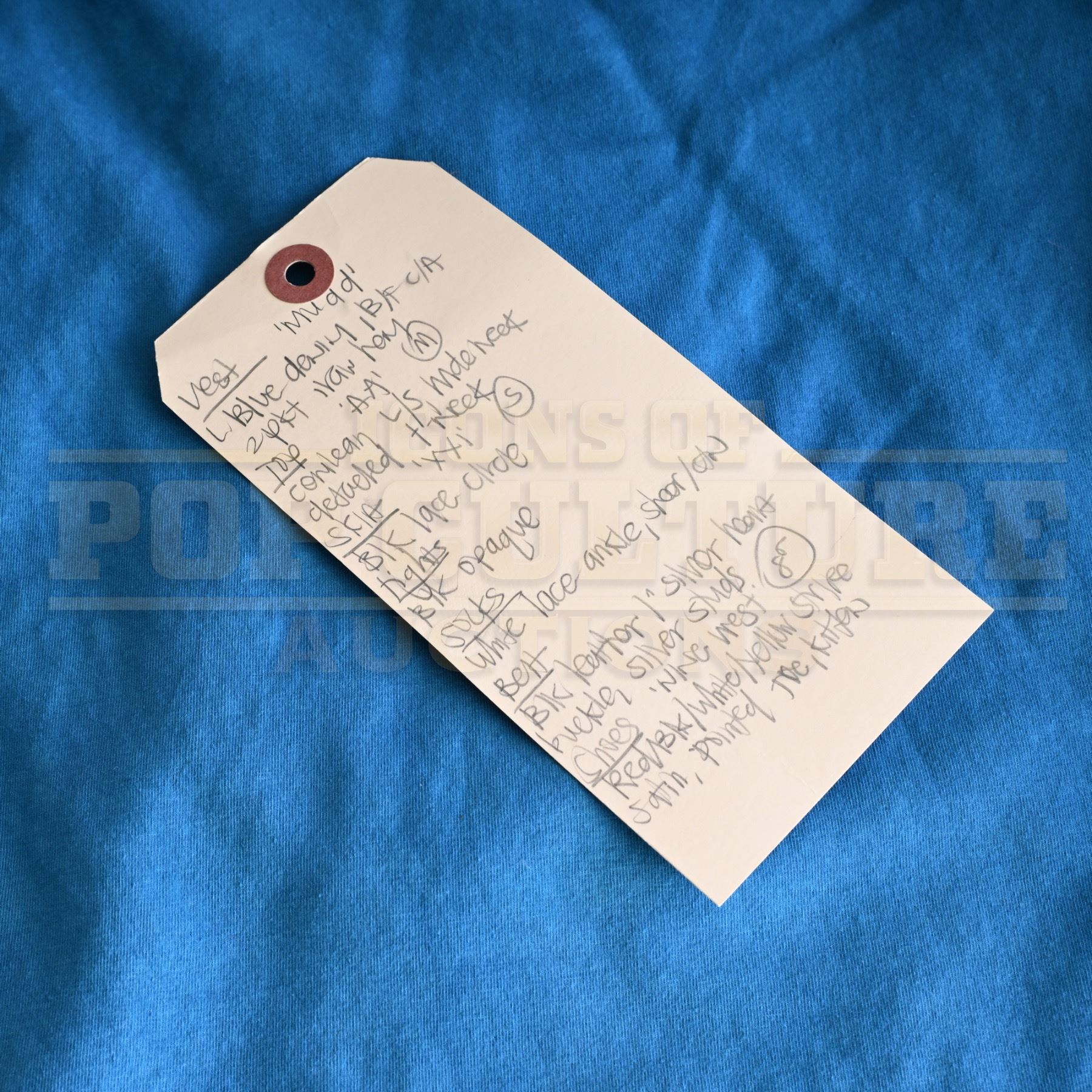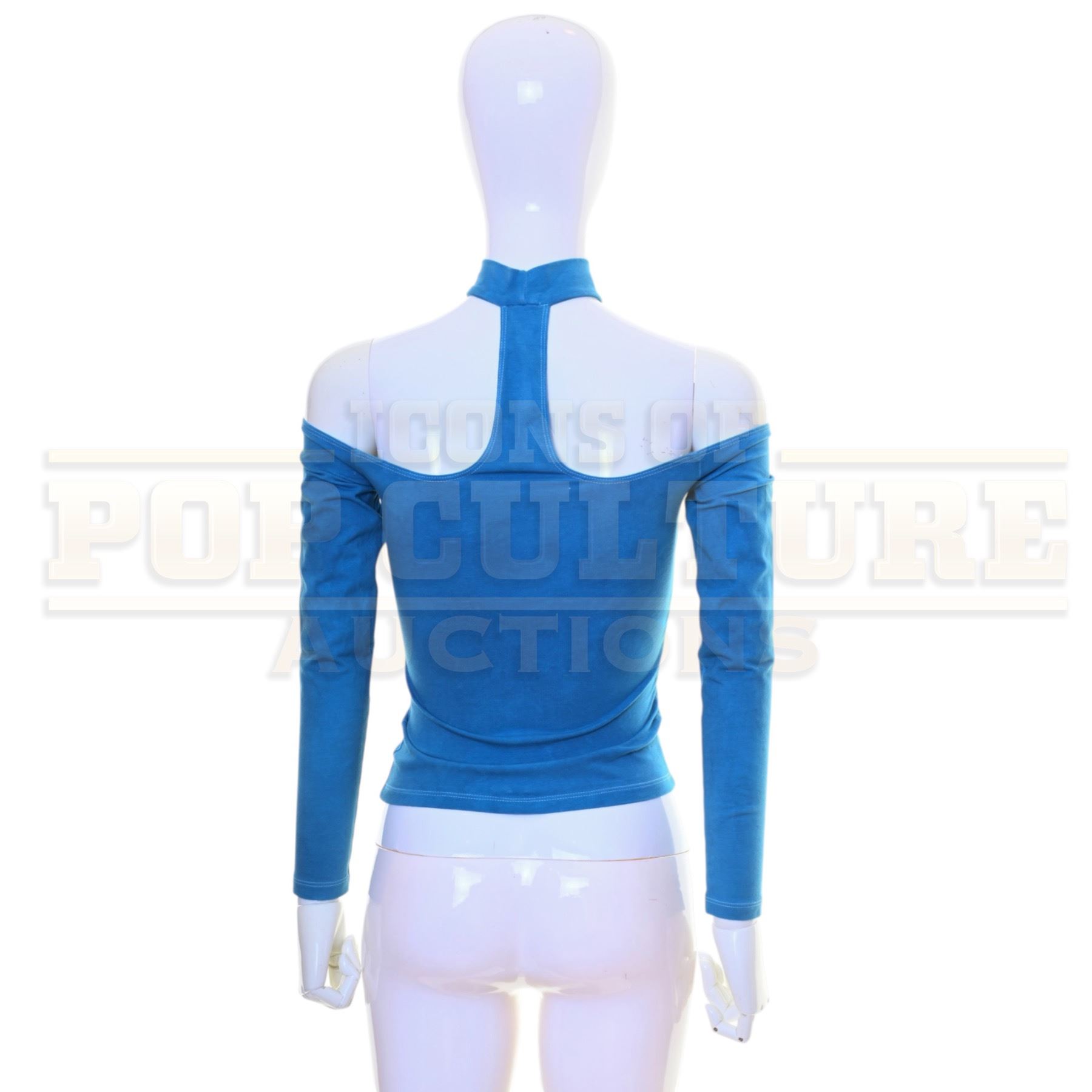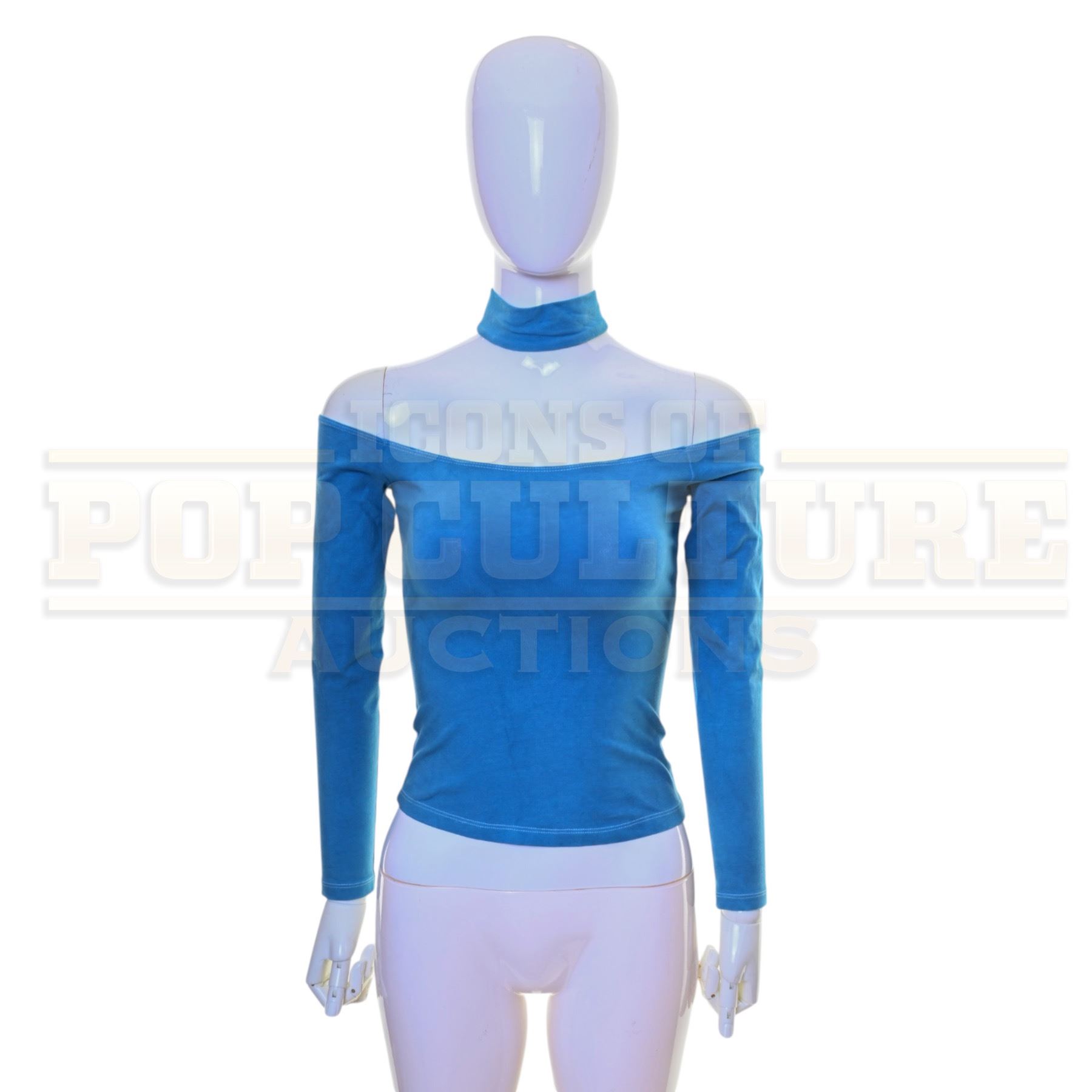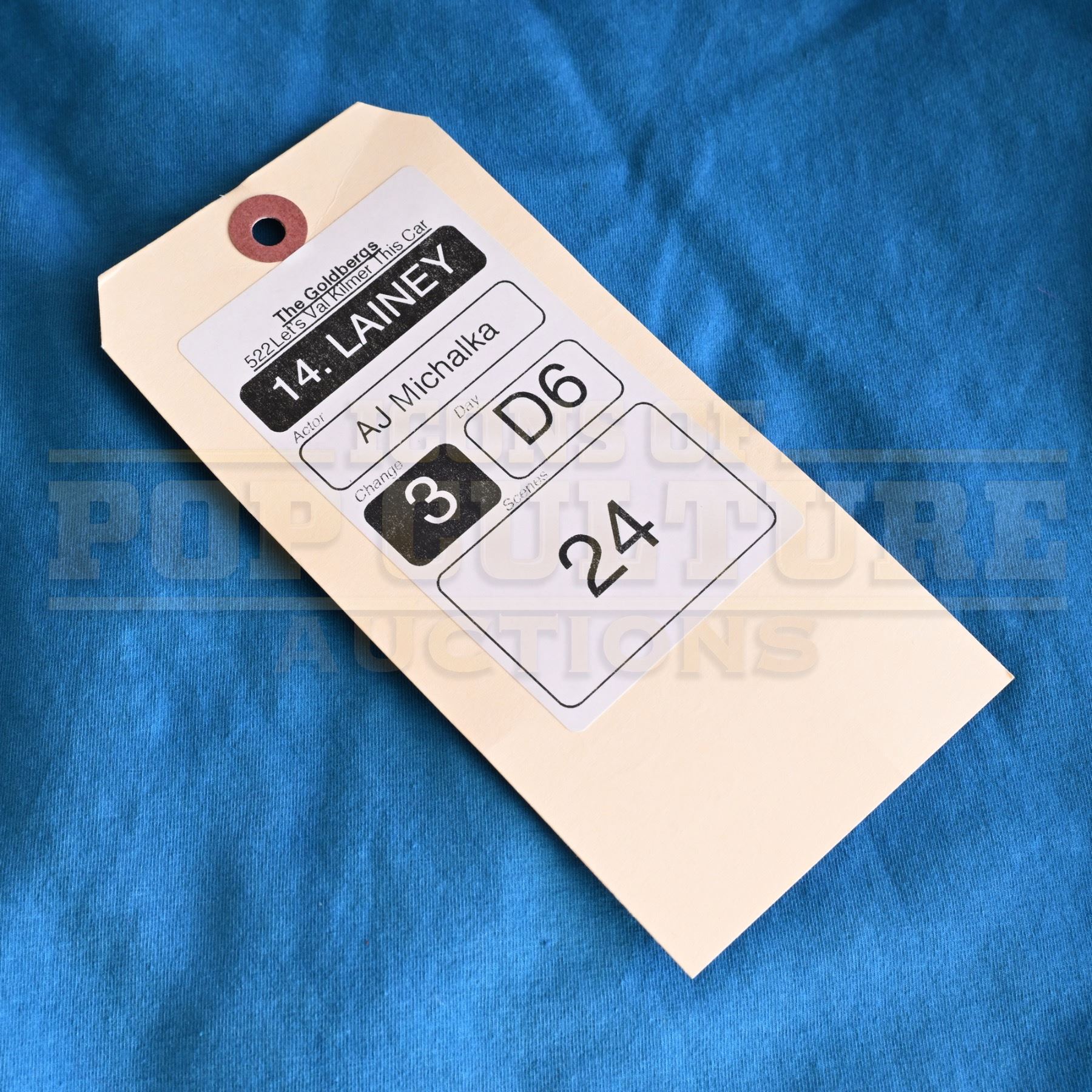 This shirt was acquired by the production for use by AJ Michalka as “Lainey” in the season five episode titled “Let's Val Kilmer This Car”. Included with the shirt is a production used costume tag that details the change and scene numbers used.