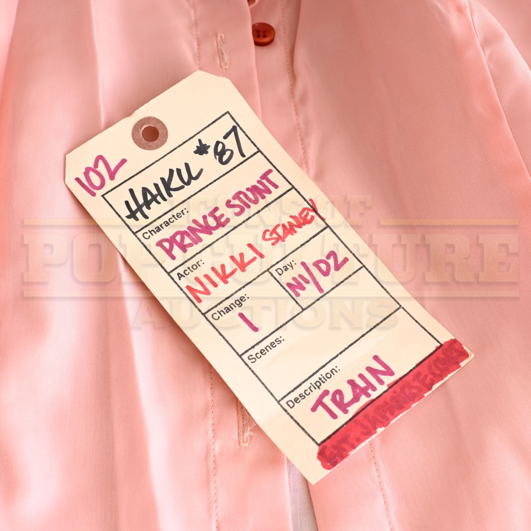 This is an original costume acquired by the production of the film "Bullet Train" This costume is not a replica; it is an actual piece acquired by the production for use by Joey King’s stunt double as “Prince”.