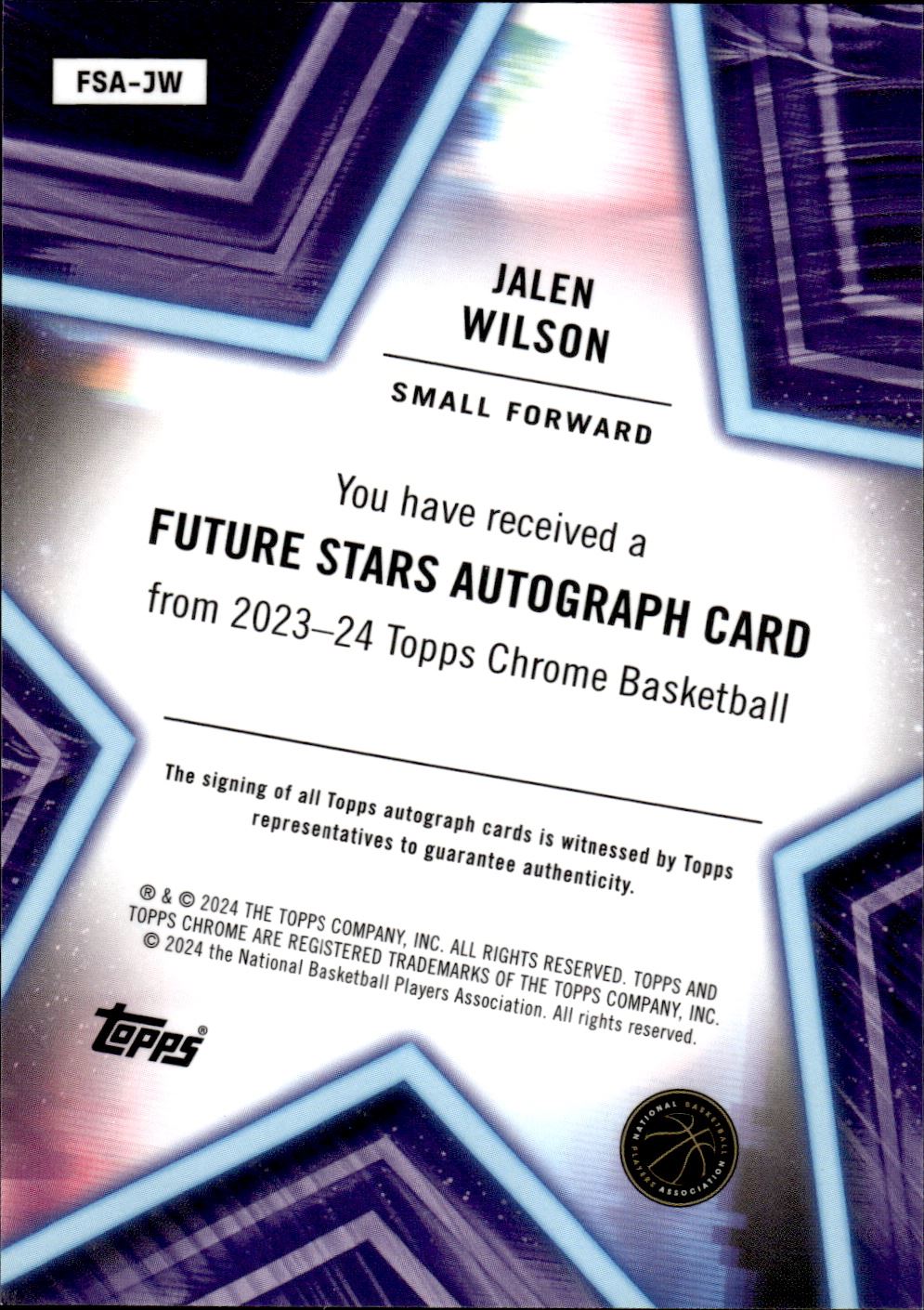 jalen Wilson Future Stars Autograph Refractor 2023-24 Topps Chrome #FSA-JW