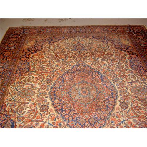 This is an antique persian rug. It has 100% wool pile on cotton base. It's an early 20th Century piece. The piece has great craftmanship, as well as being a timeless piece of art.