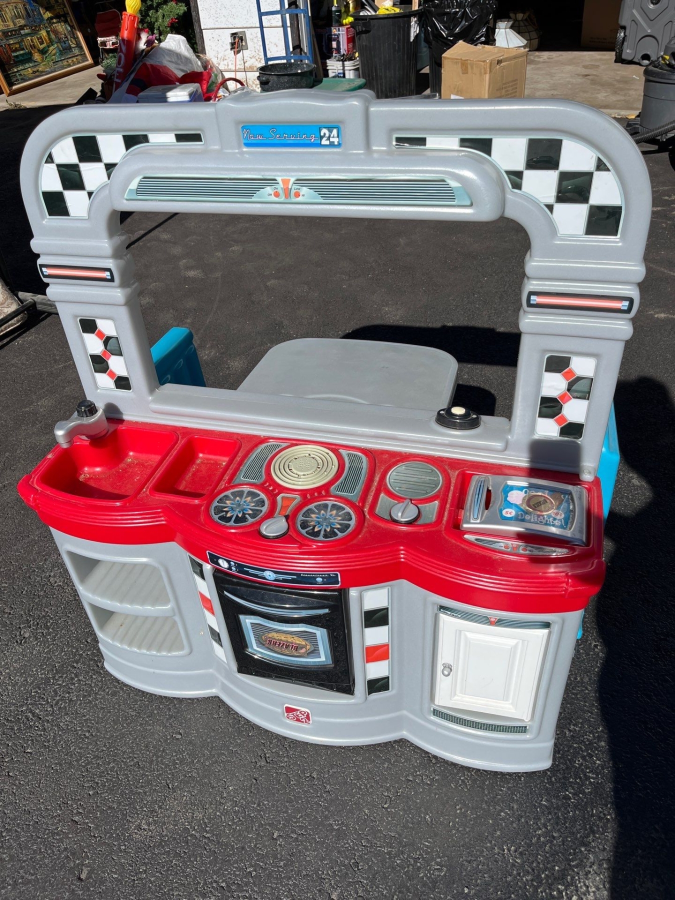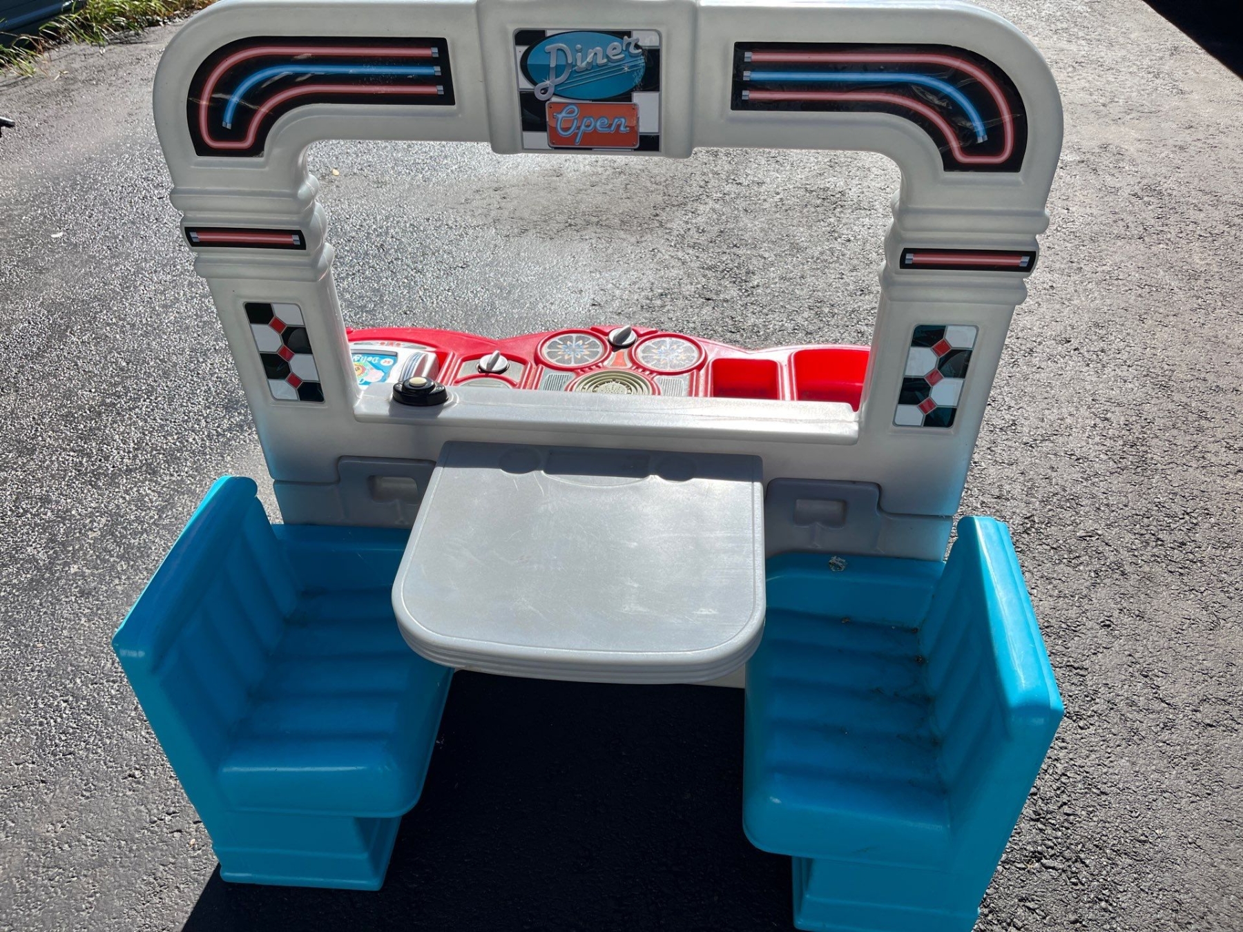 kids Dinner set with kitchen on one side and a dining booth on the other