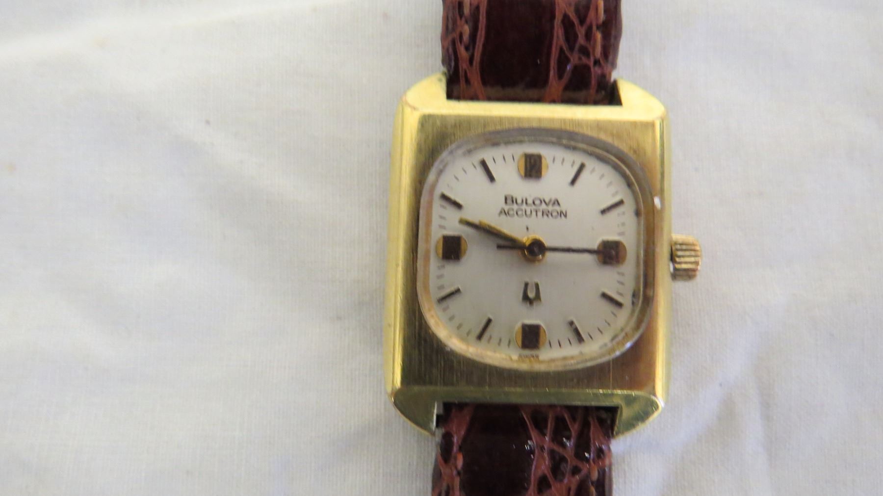 ladies bulova accutron 10k "R.G.P" on back (working)
