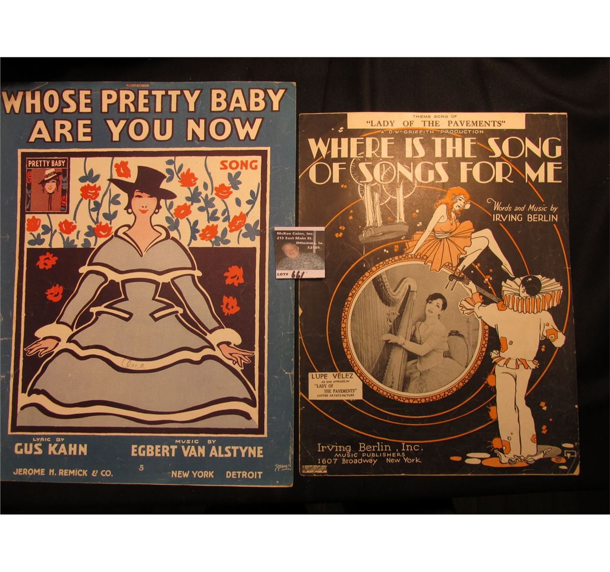 "lady of the Pavements" Where is the Song of Songs for me. By Irving Berlin, "Whose Pretty Baby are You Now" By Gus Kahn & Egbert Van Alstyne. Music Sheets.