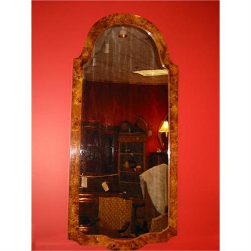 Wonderful Art Deco mirror from 1920's. Poplar burl veneer on pine. Measures 49 1/4 by 22 1/2 by 2 1/4, original glass which is the most beautiful and where the value lies.