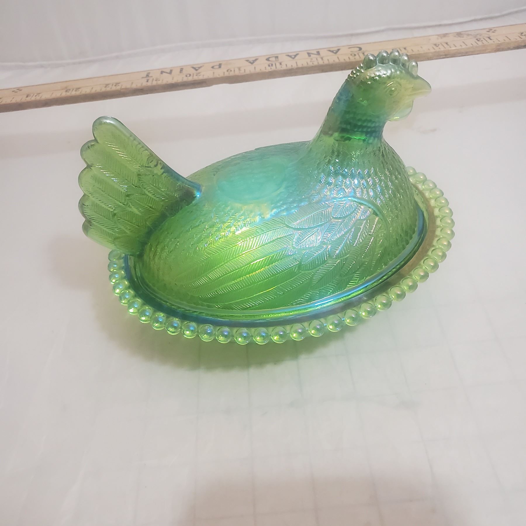 large Hen on a nest with Lid lustre Carnival Indiana Glass