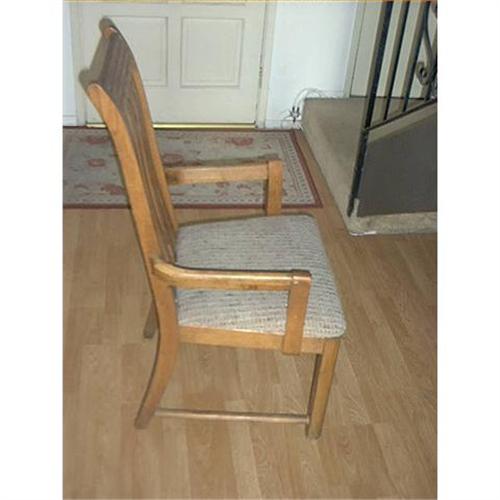 large Oak Arm Chair. This is a nice oak arm chair and great for an office or in front of a computer. It has a cushion seat that could use a nice color one put on, and the chair could use some refinishing, but it is a nice design and oak and very sturdy. A real nice different one and worth doing up, or just use it the way it is. It is 42" H X 22" X 23" I like the way the chair is designed and it looks really nice. Hope you like it.