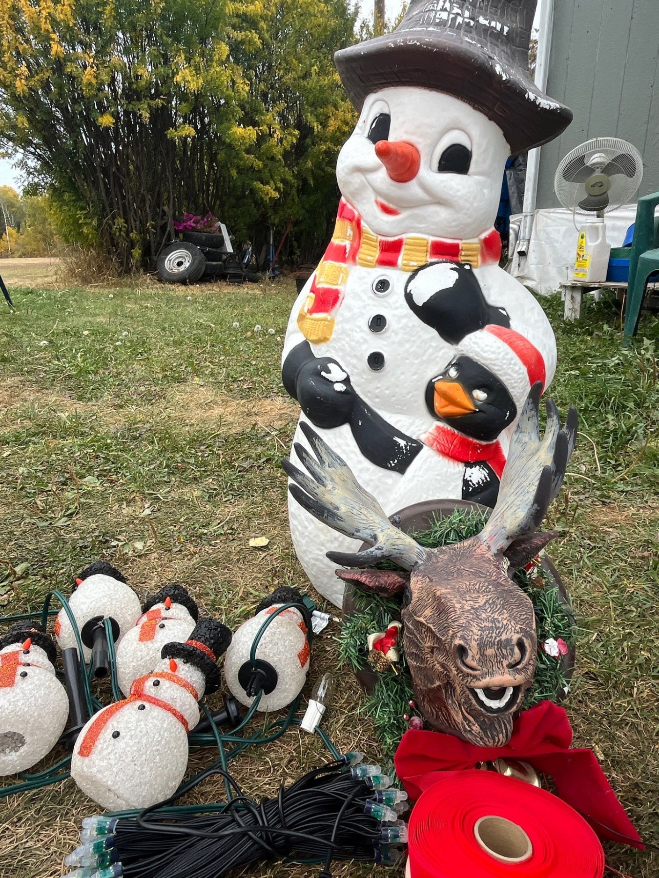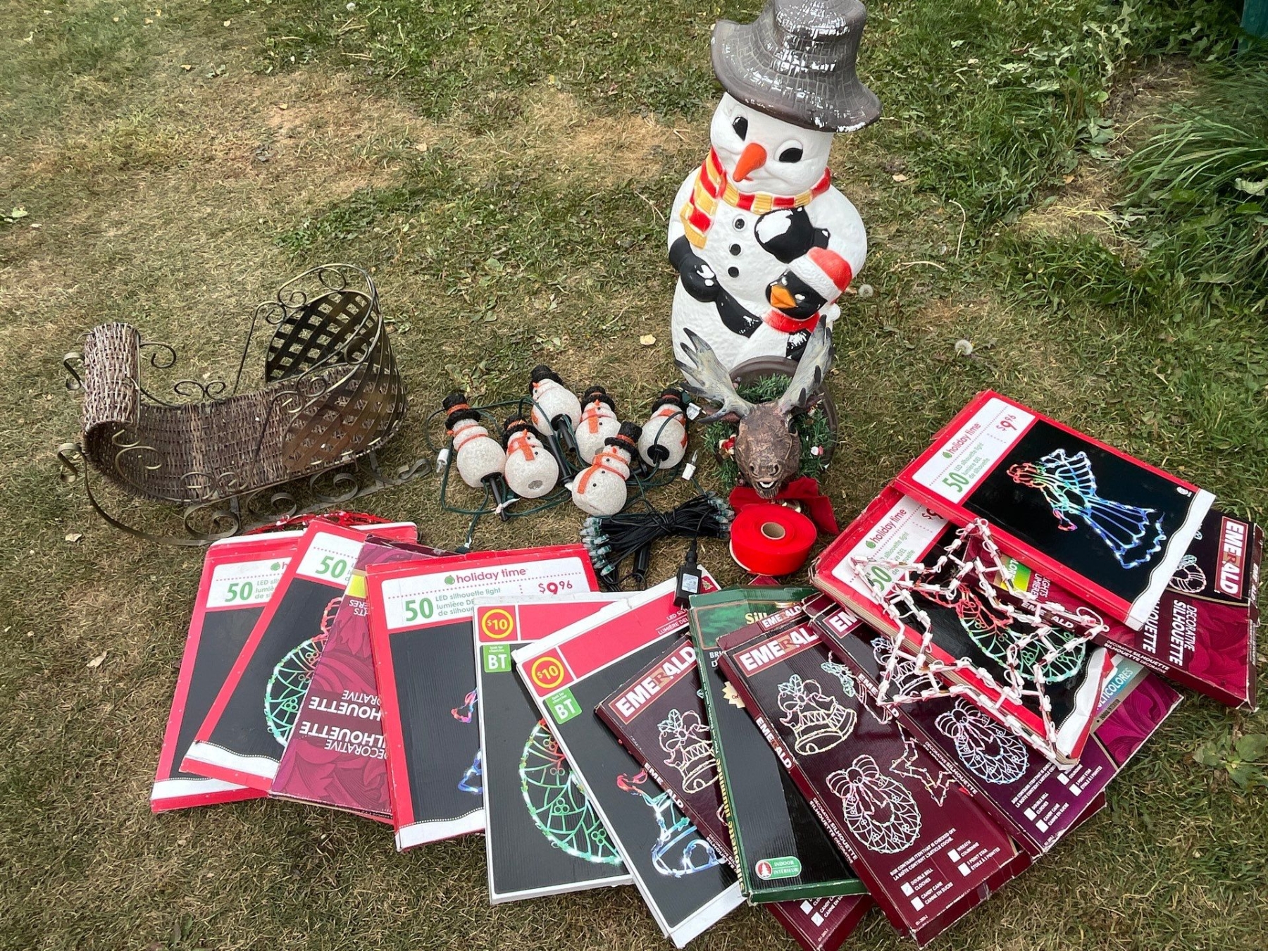 large collection of Christmas, decorations and number of lit up Christmas outside lights
