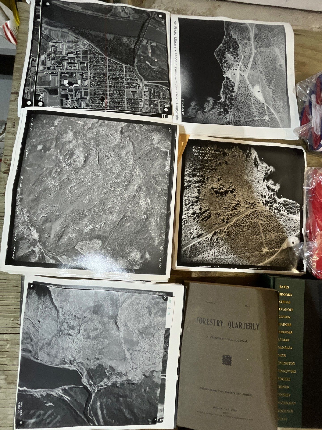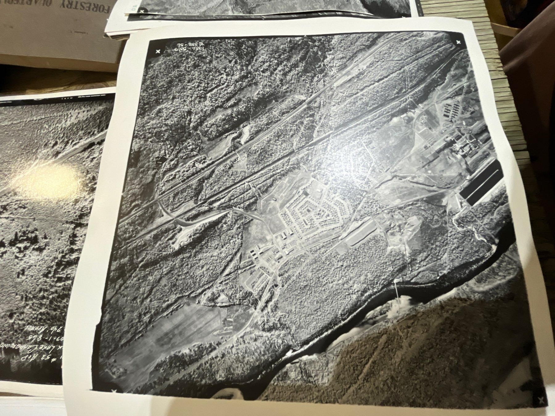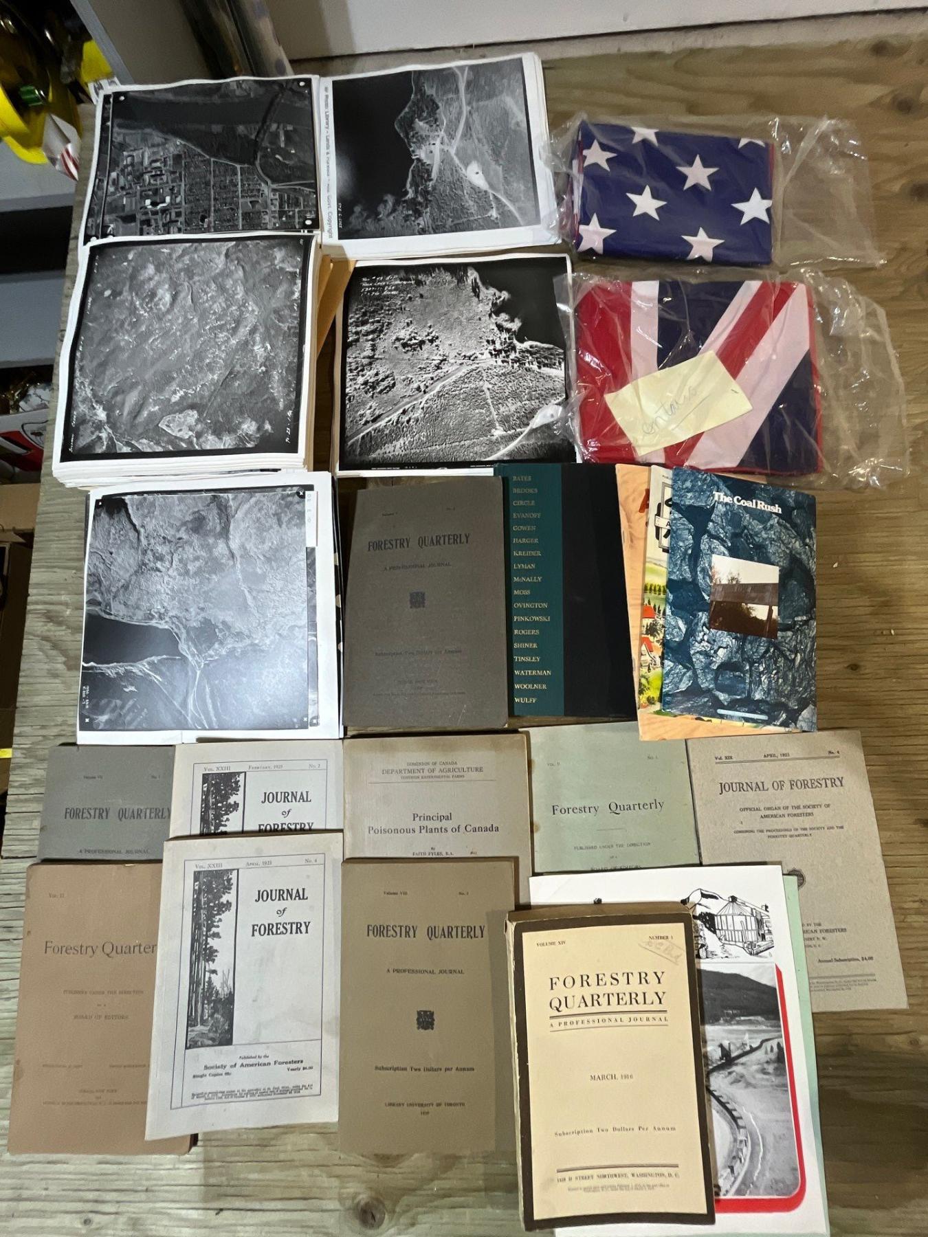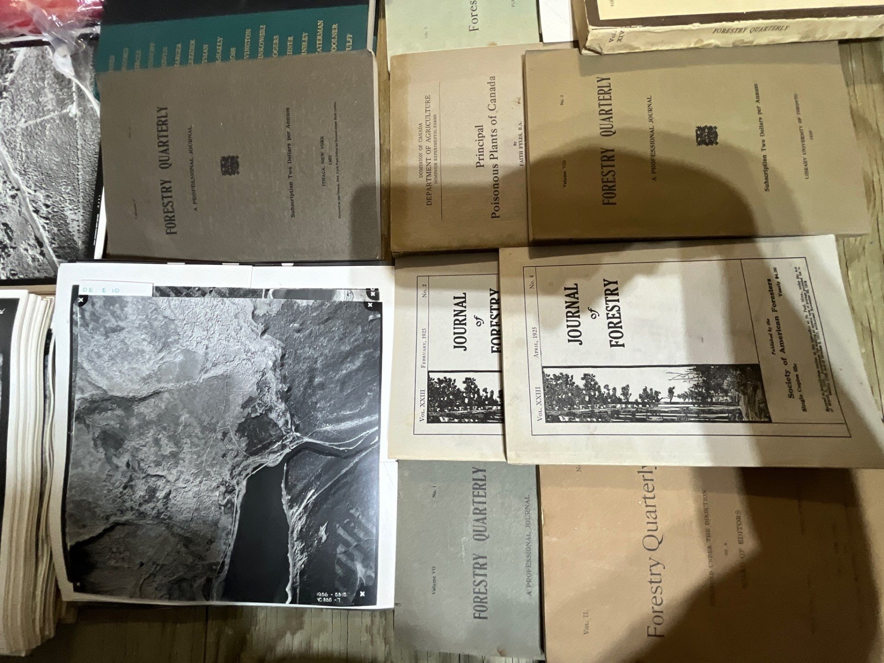 large collection of black-and-white air photos from around the Jasper Hinton and Edson , along with a number of forest de journals and reports along with an Ontario and US flag