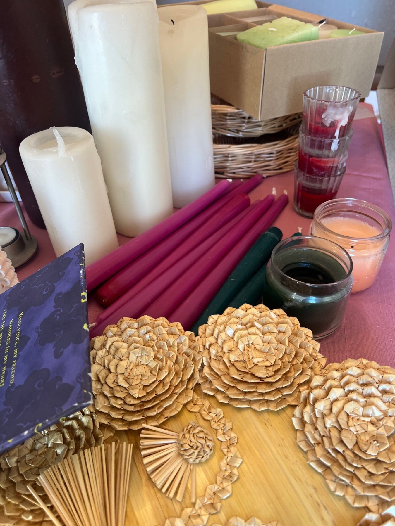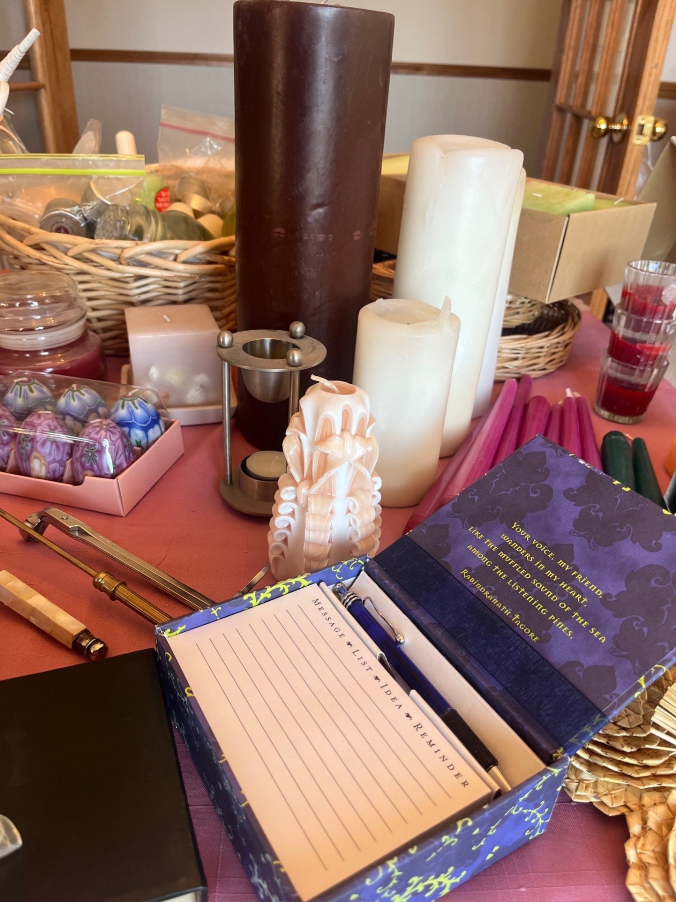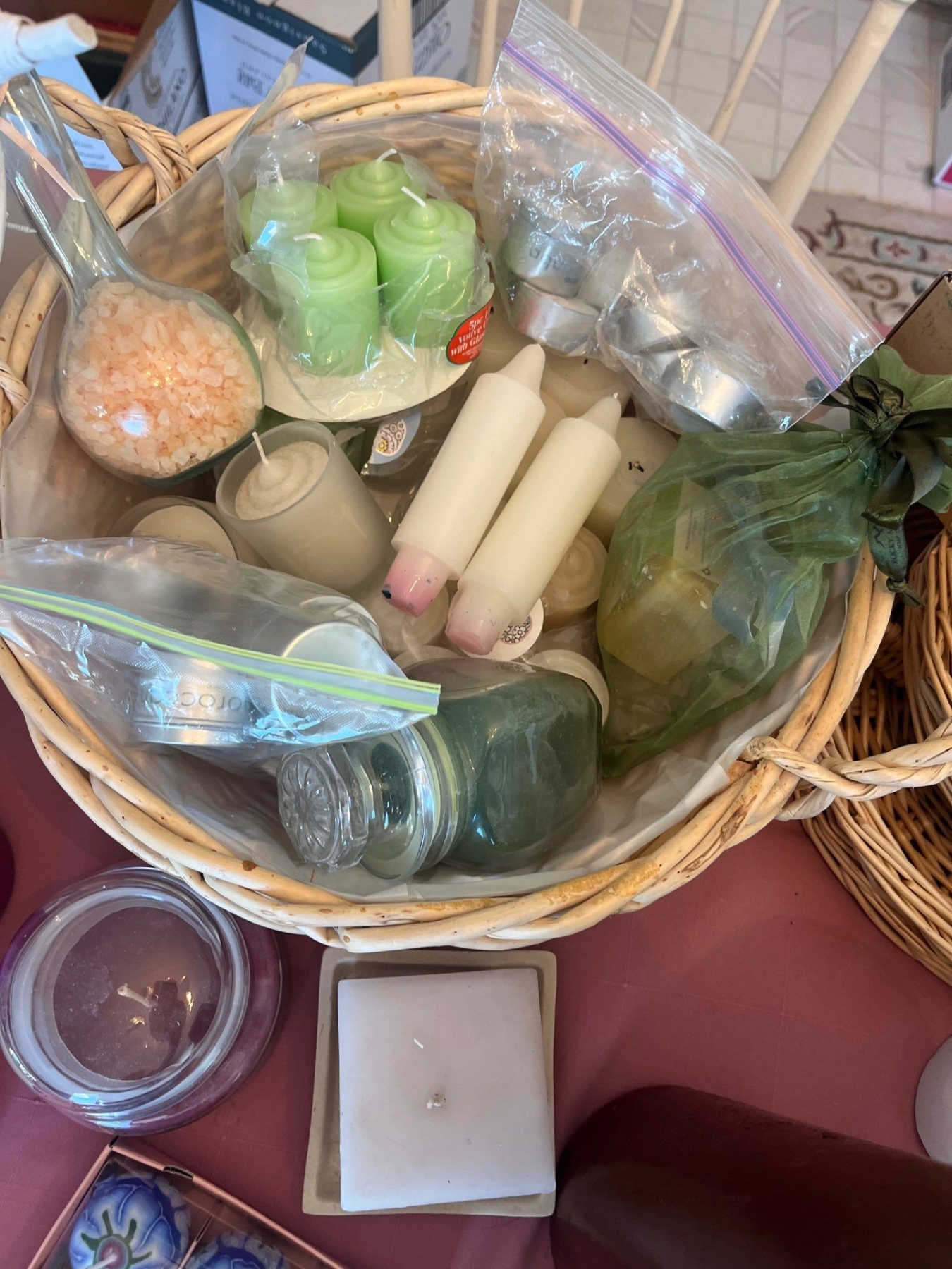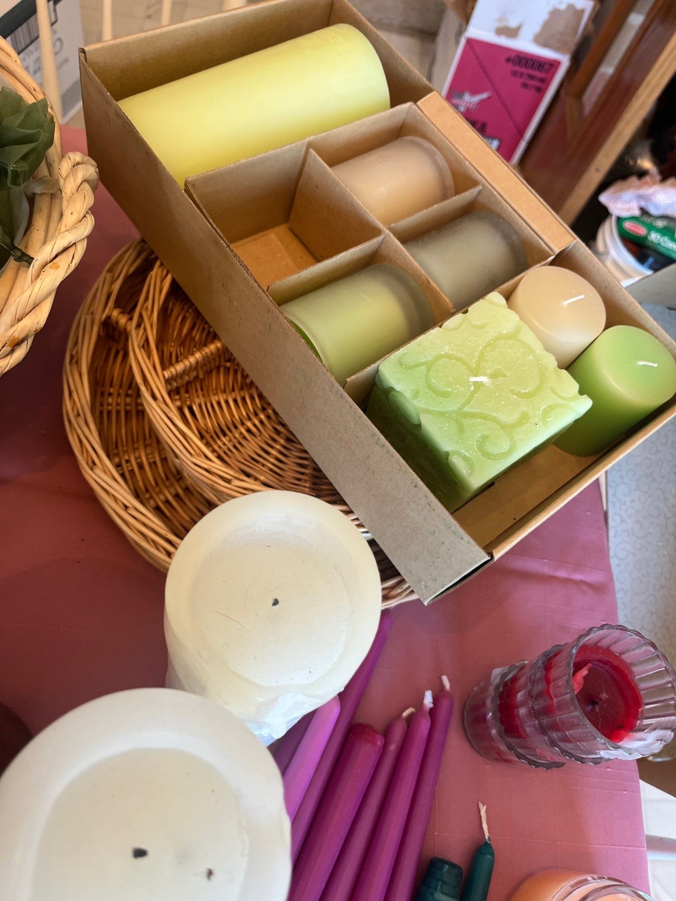 large collection of candles, candle holders, and baskets. Include sense for your candles, as well a