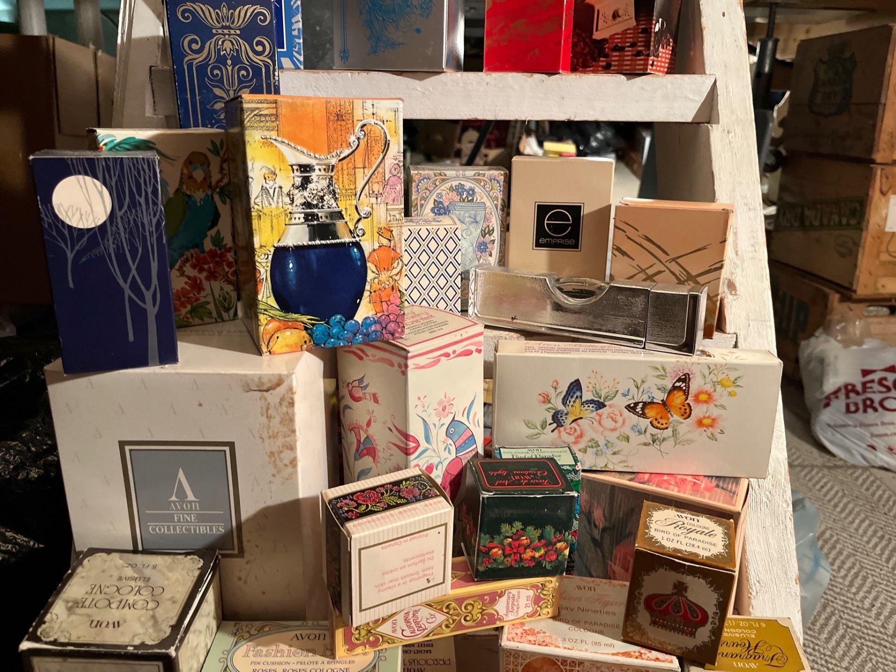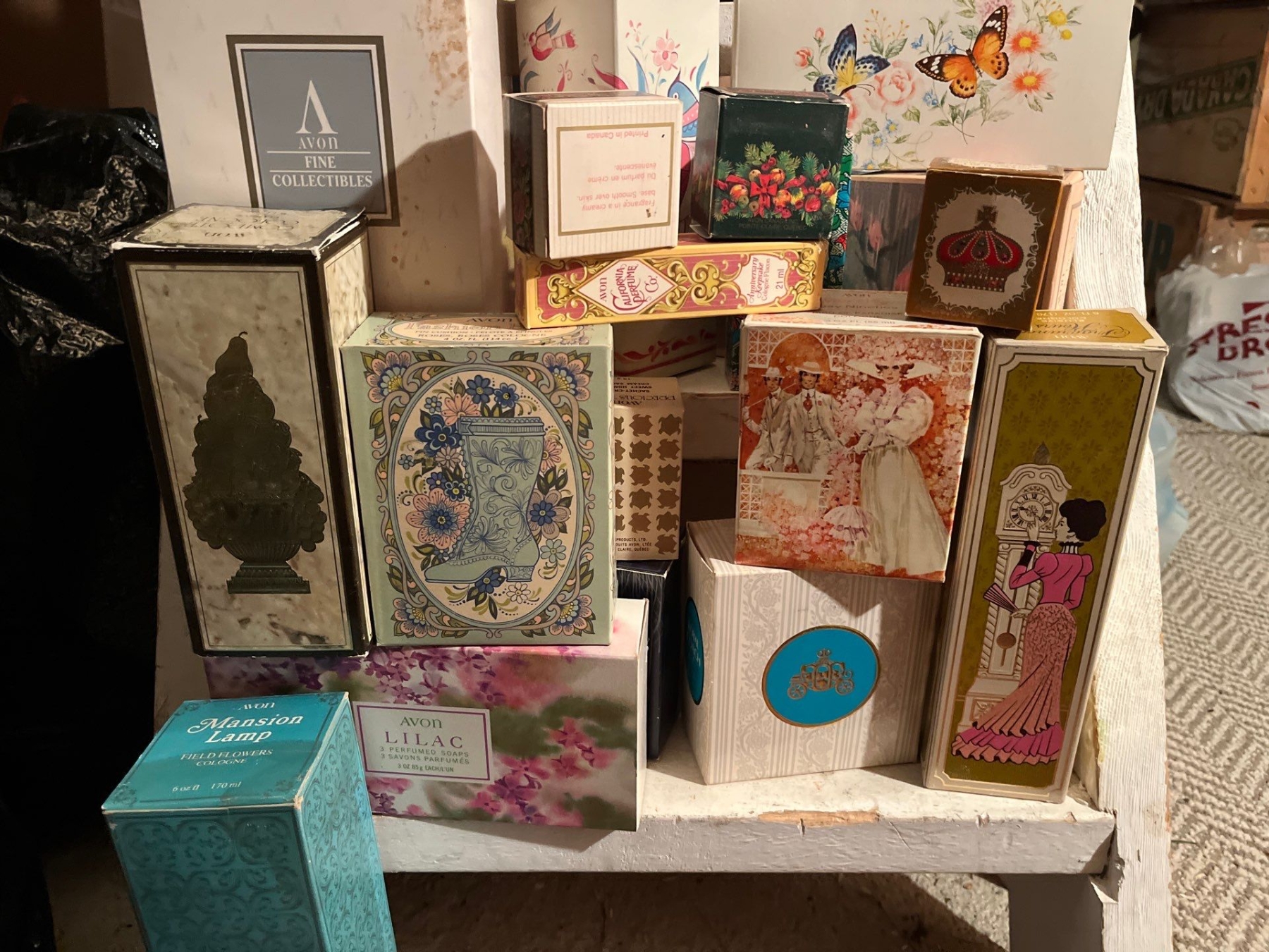 large collection of unopened Avon collectable soaps and perfume all original boxes great for Ava and collector