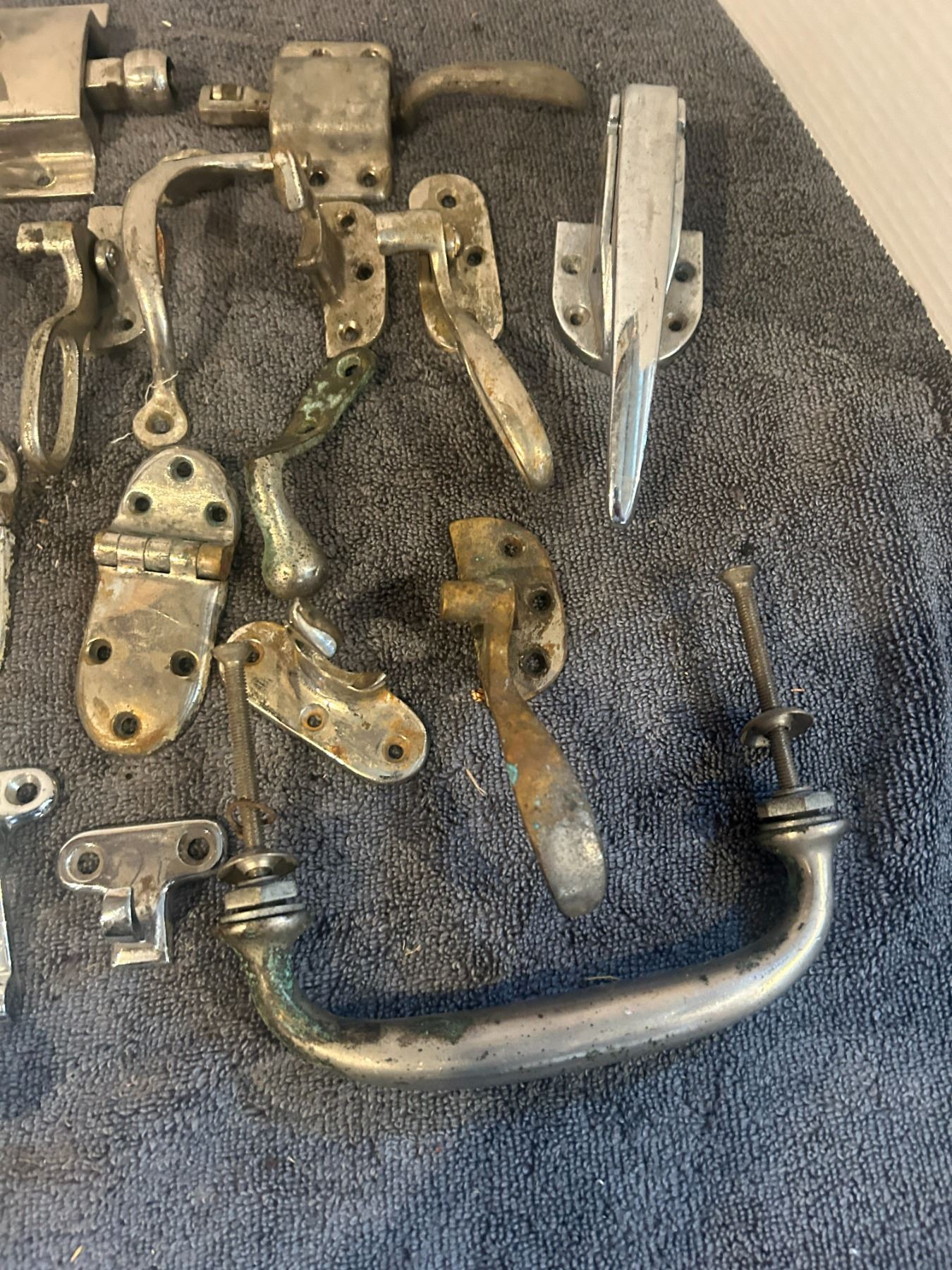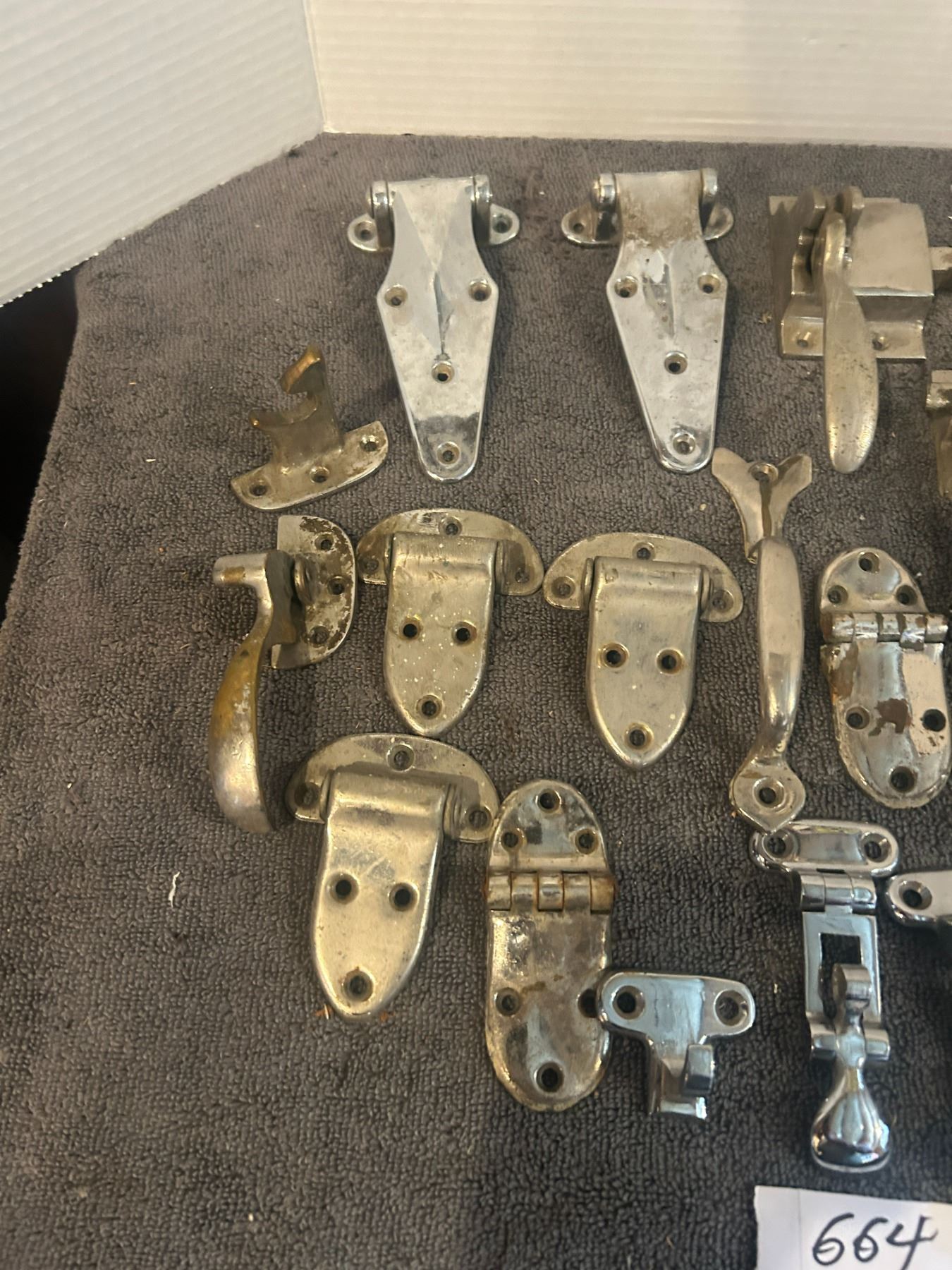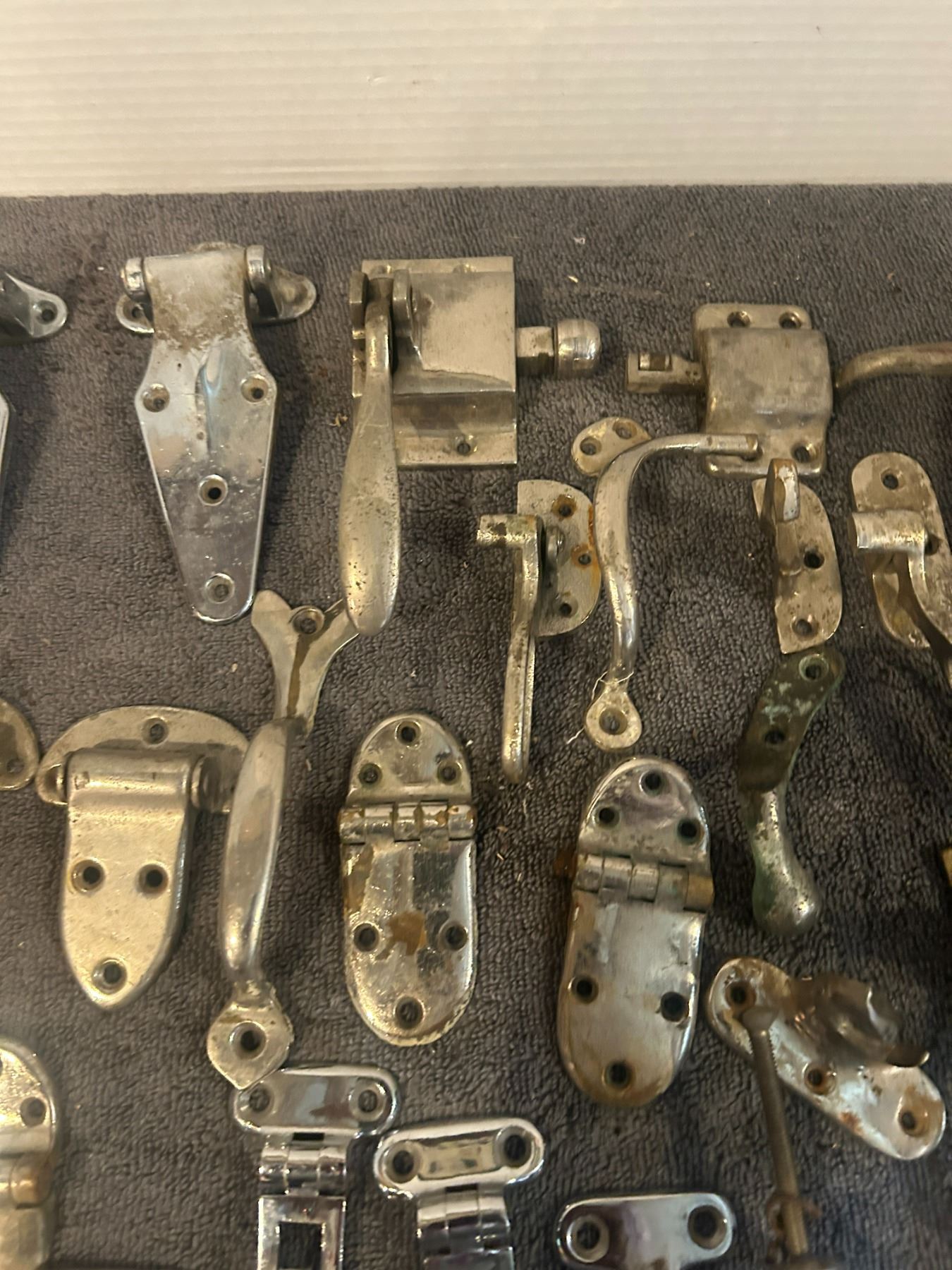 large lot -chorme hardware looks like some ice box hinges + handles