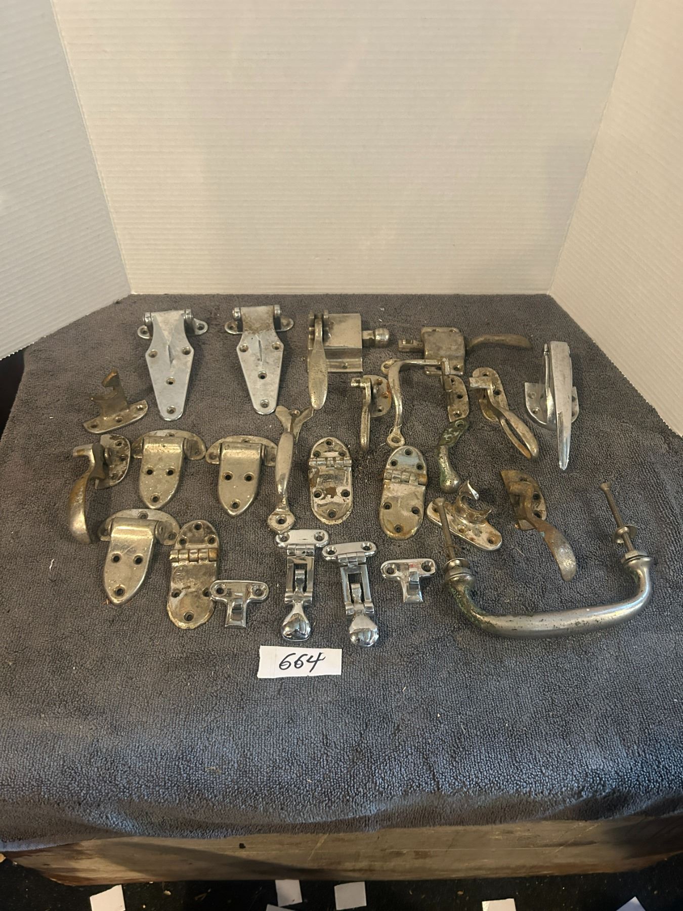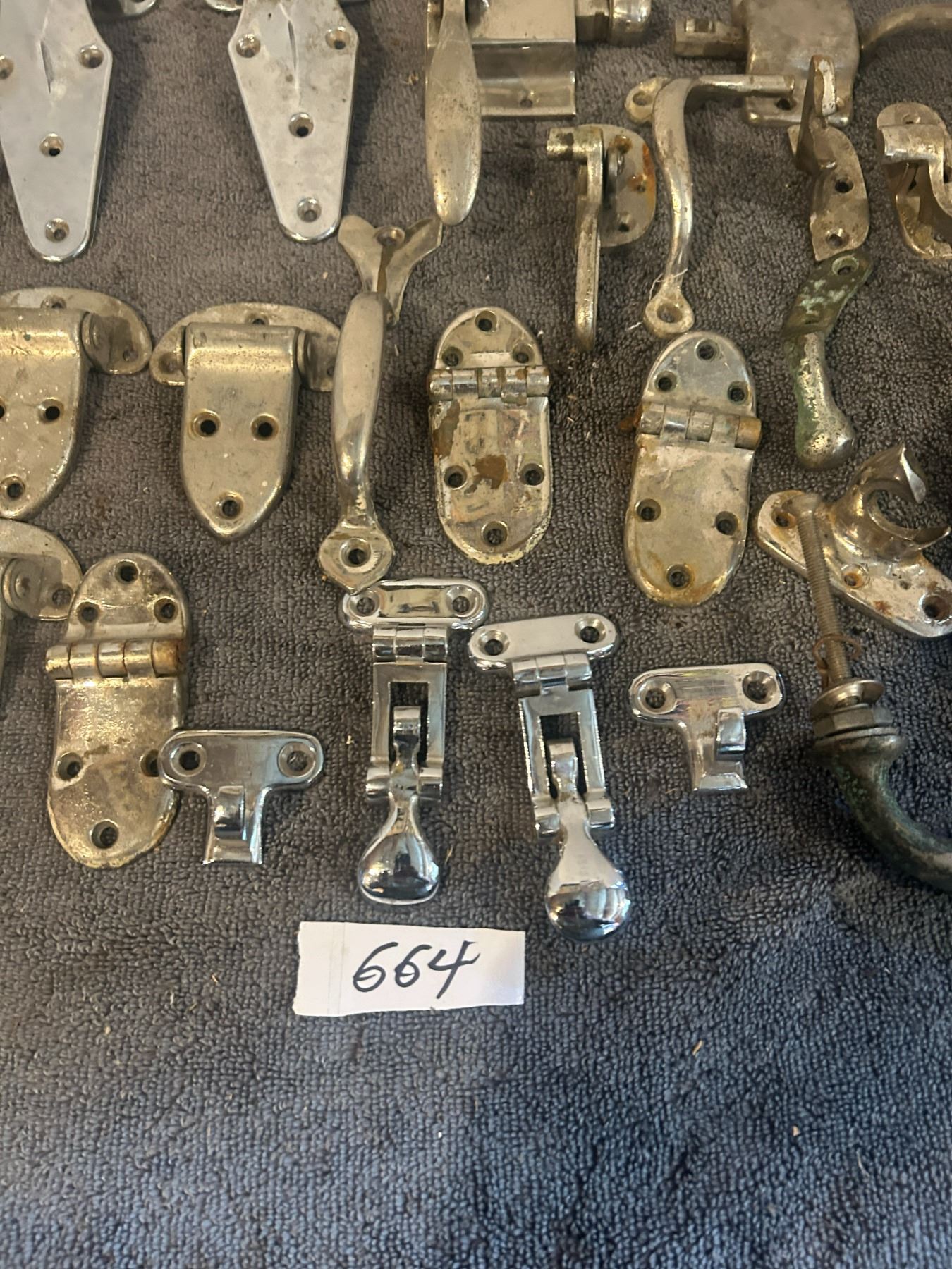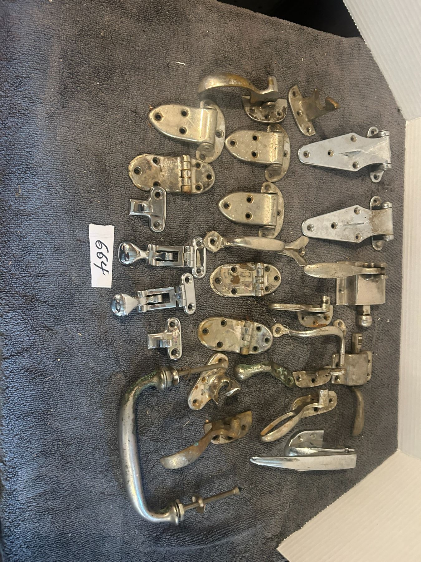 large lot -chorme hardware looks like some ice box hinges + handles