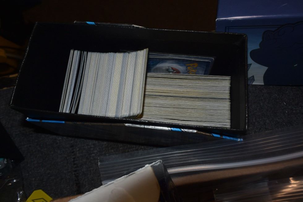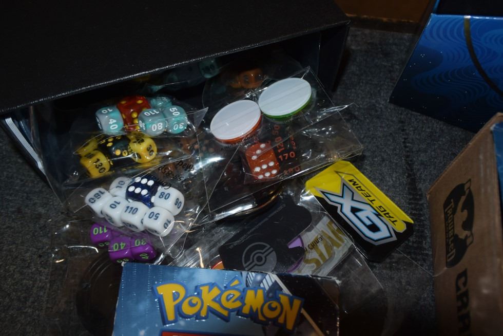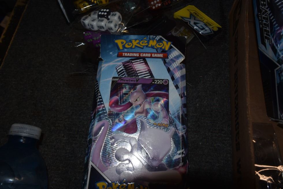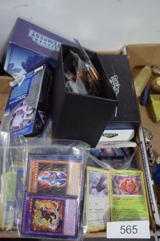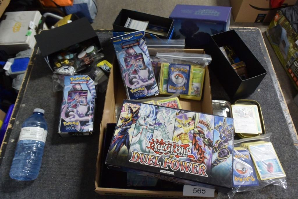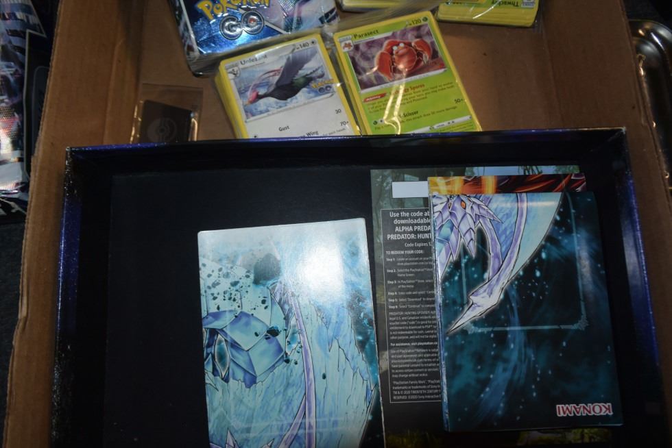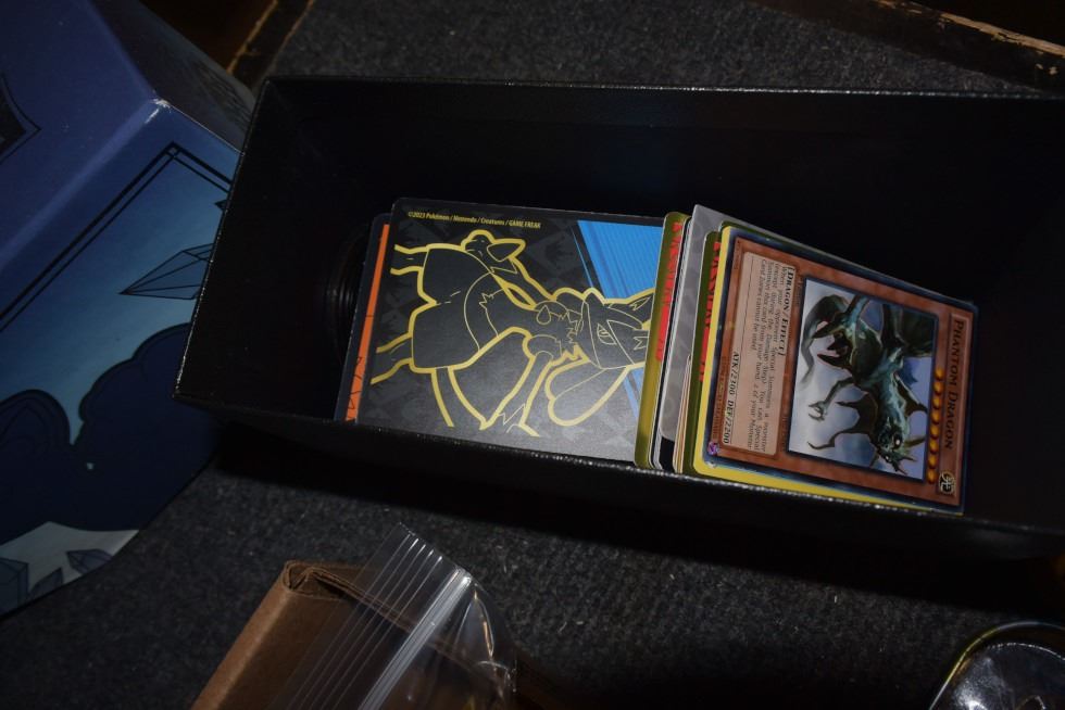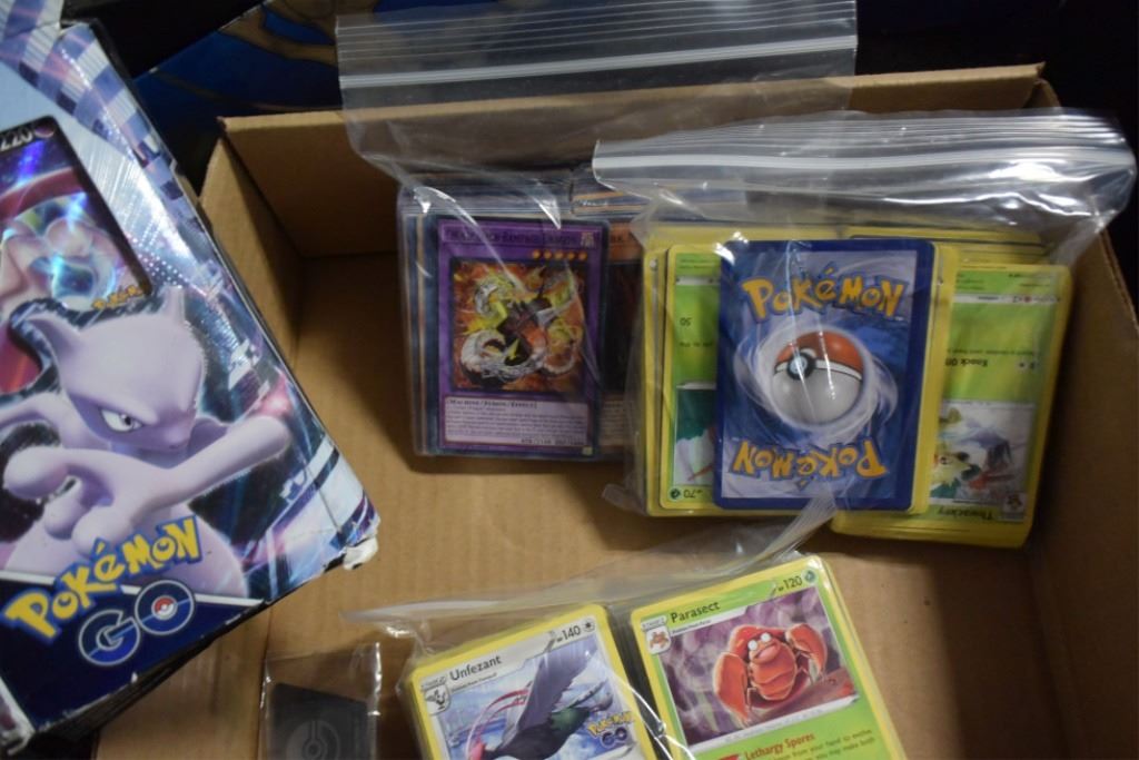 large lot of Pokemon cards, yu-gi-oh cards, dice