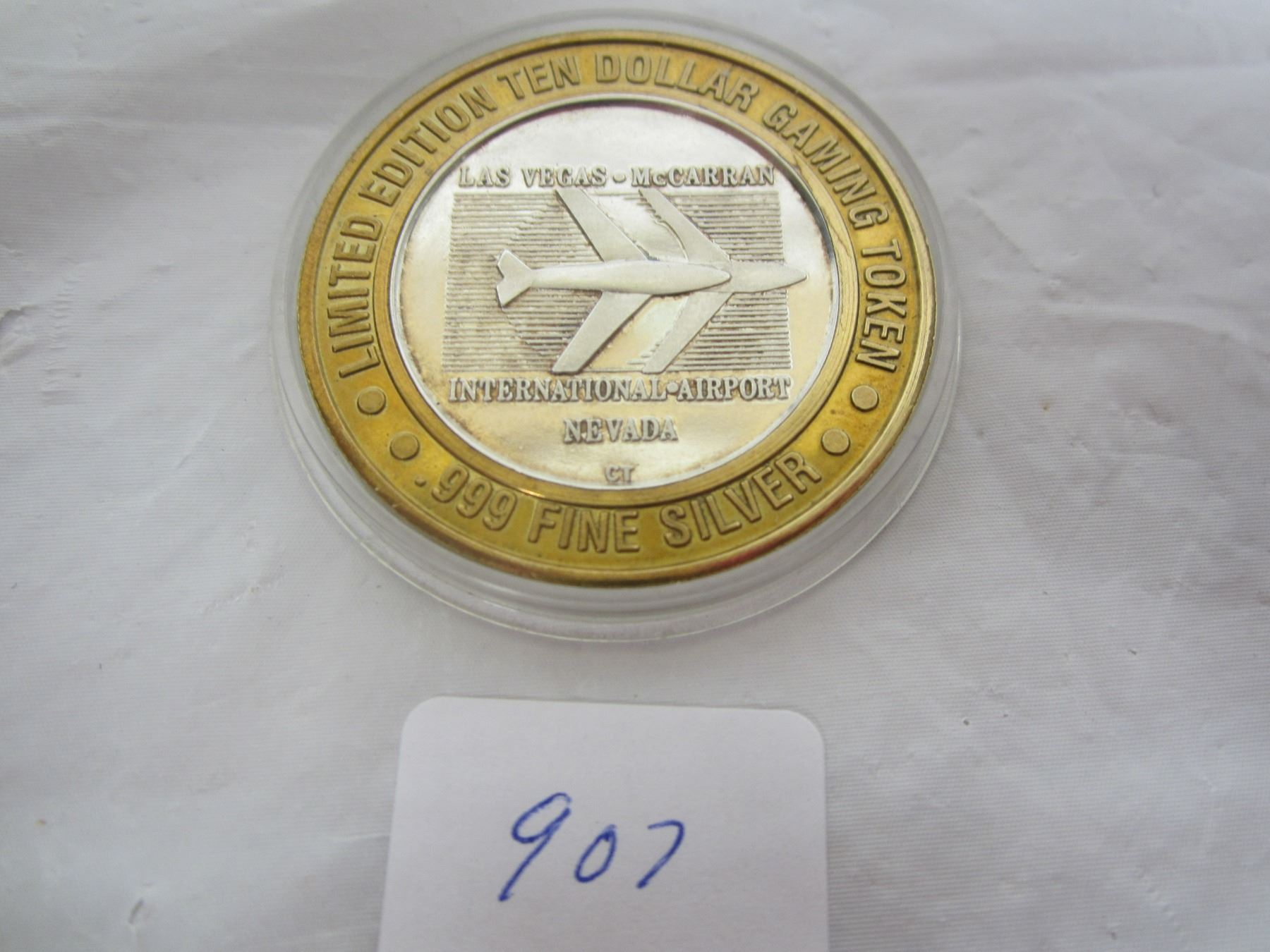 las Vegas Ten Dollar Slot Machine Token with 99.9 Silver Center 907. Las Vegas 10 Dollar Slot Token with a 99.9 Silver Center