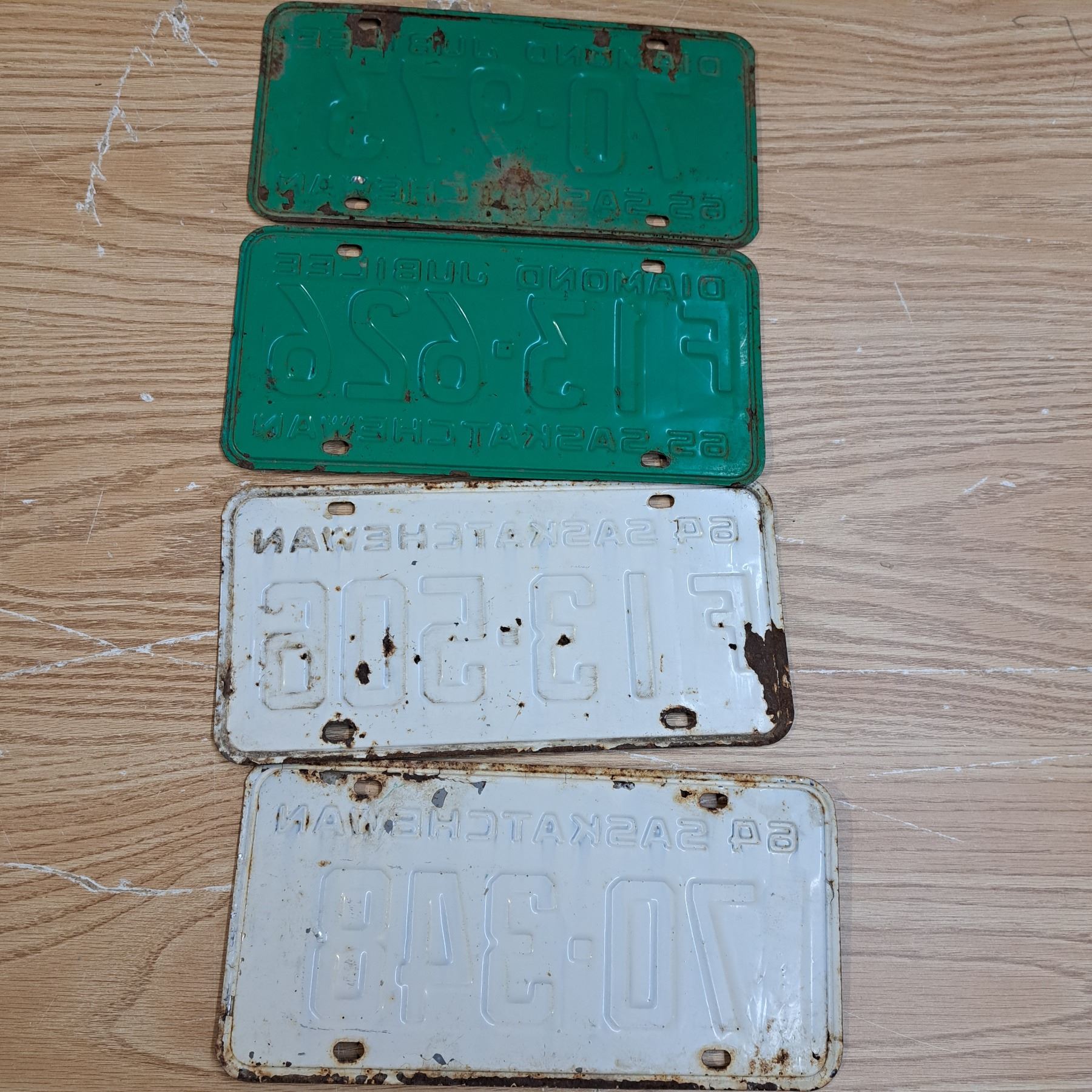 licence plate Sask two 1965 jubilee 5 digit and two 1964 5 digit