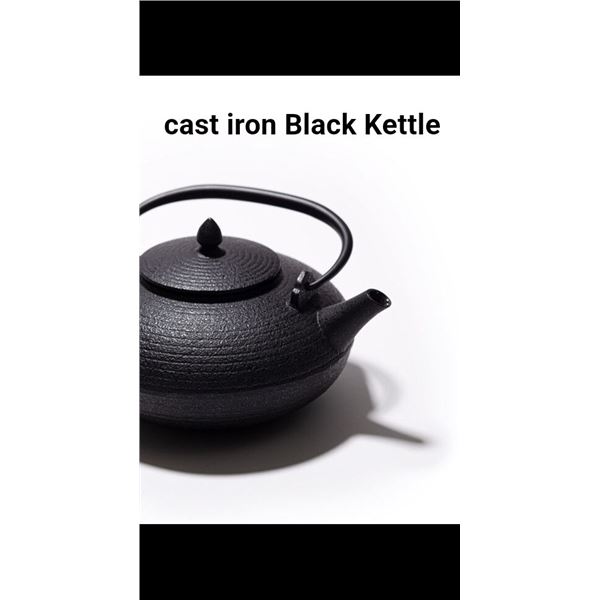Cast iron, black kettle, durable, ideal for traditional cooking, versatile kitchenware, new.