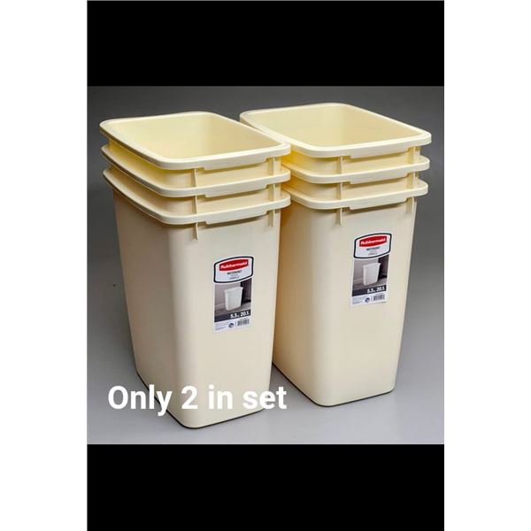 Rubbermaid wastebasket, cream color, 5.3 liters, durable, sleek design, ideal for small spaces, new.