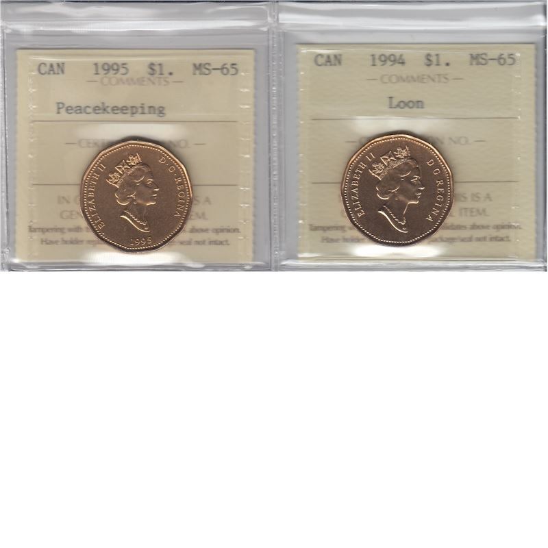 loon $1 1994, 1995 Peacekeeping ICCS MS65. 2pcs