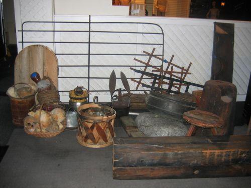 (lot) Miscellaneous assorted MEDIEVAL DUNGEON props. Includes 2 candle holders and several enlarged color photos