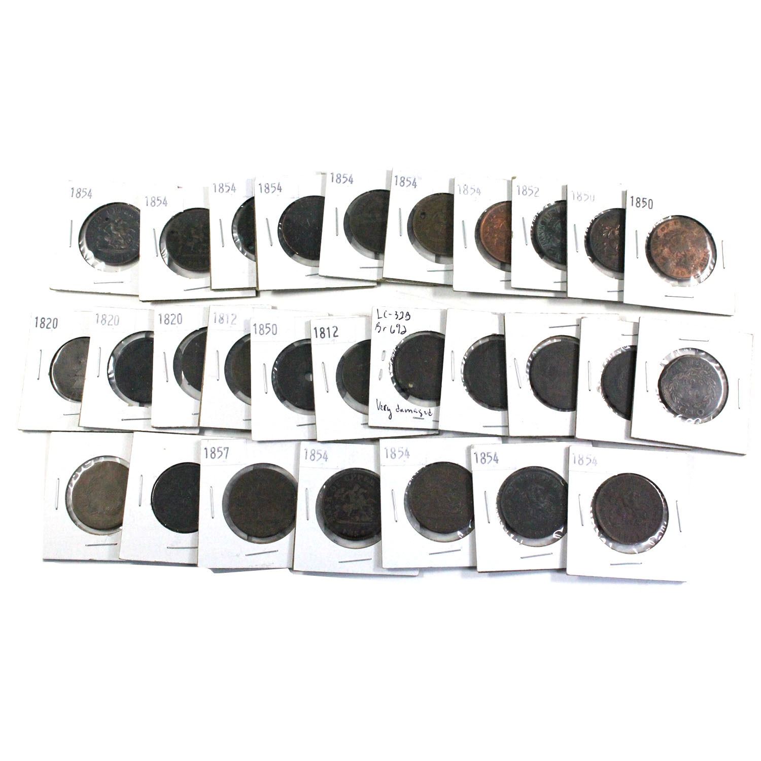 lot of 28x 1812-1857 bank tokens. You will receive 28 pcs dated between 1812 and 1857.