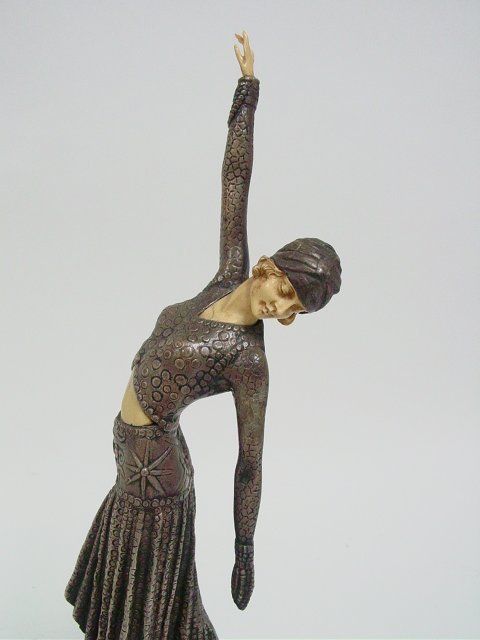 Art Deco Woman (broken hand), White pair of metal Musicians ( one of them with repair). 11" & 16"